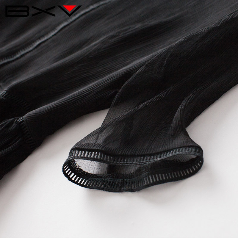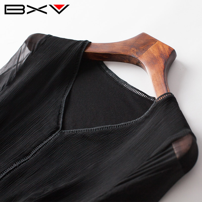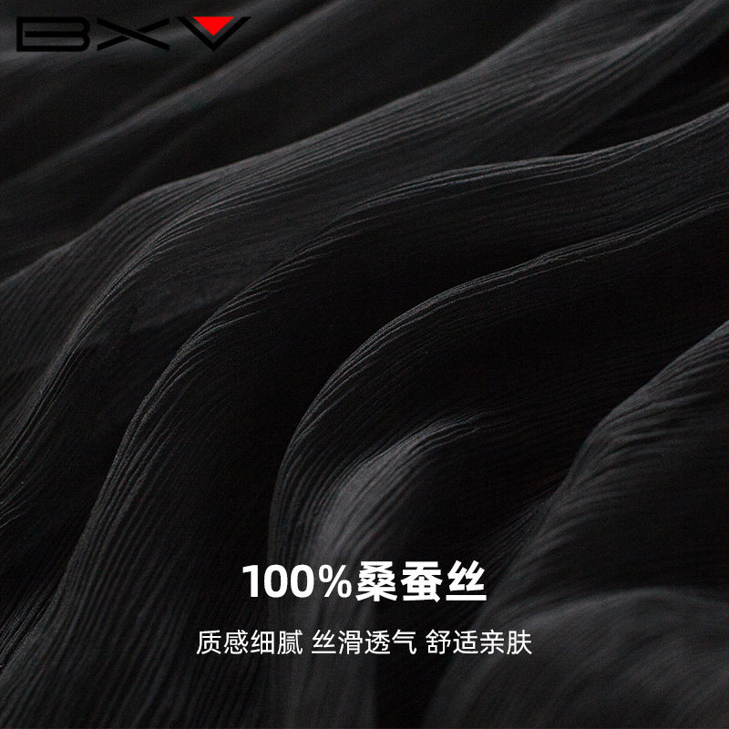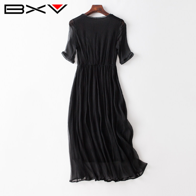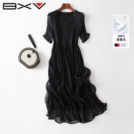 BXV黑色桑蚕丝连衣裙女中长款2025夏季新款显瘦超仙长裙真丝裙子