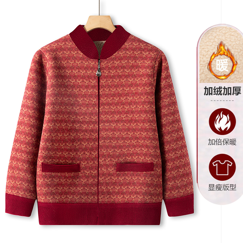 妈妈春冬装新款加绒上衣中年妇女拉链开衫中老年女休闲洋气外套秋