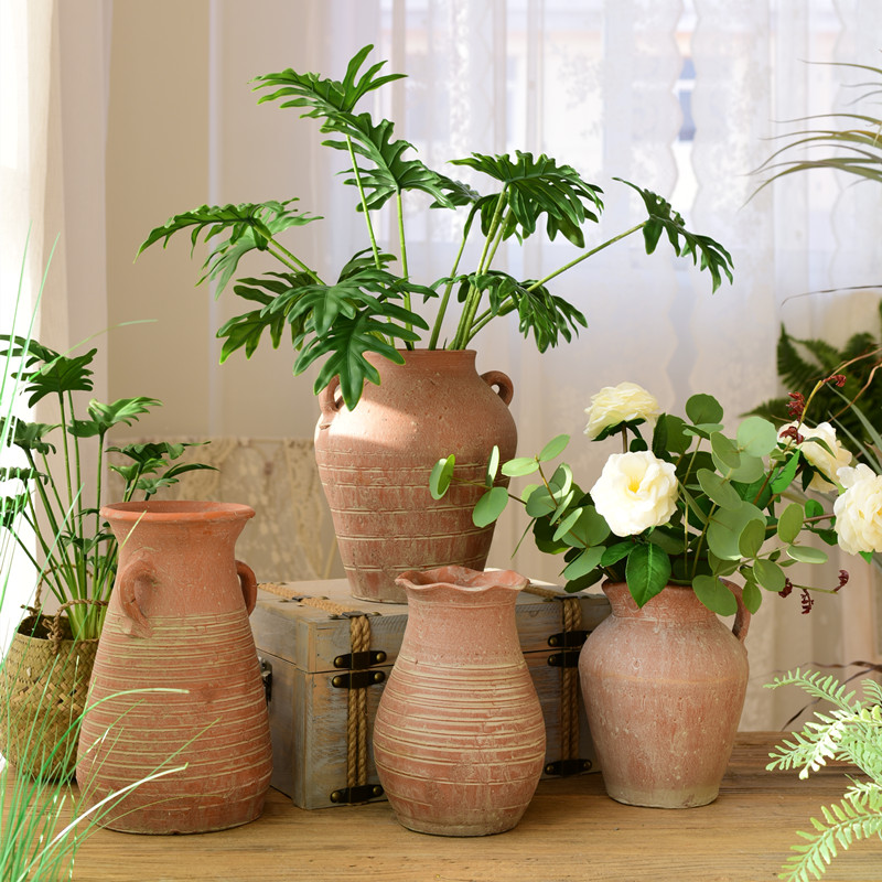 粗陶陶瓷花盆手工复古摆件落地花瓶法师老桩花盆多肉高筒盆土陶罐