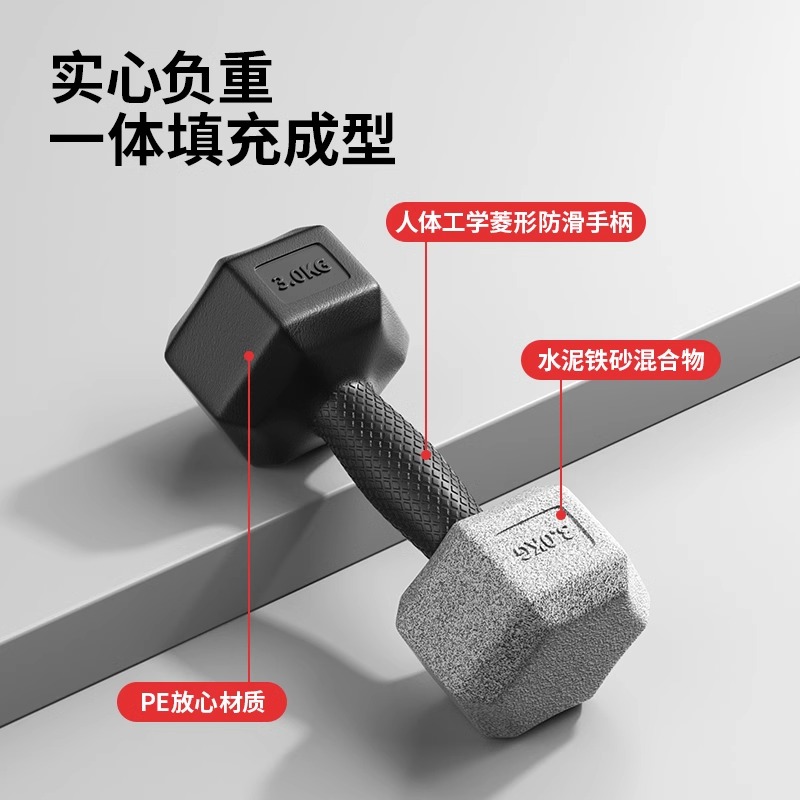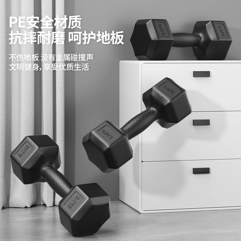 哑铃男士健身家用健身包胶10kg一对学生宿舍女生力量训练六角哑铃