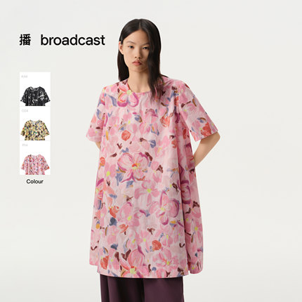 播商场同款印花圆领连衣裙女26春季新款宽松气质裙子BDT1LD1377