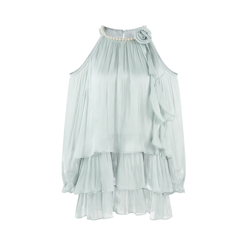 法式富家千金风露肩挂脖连衣裙