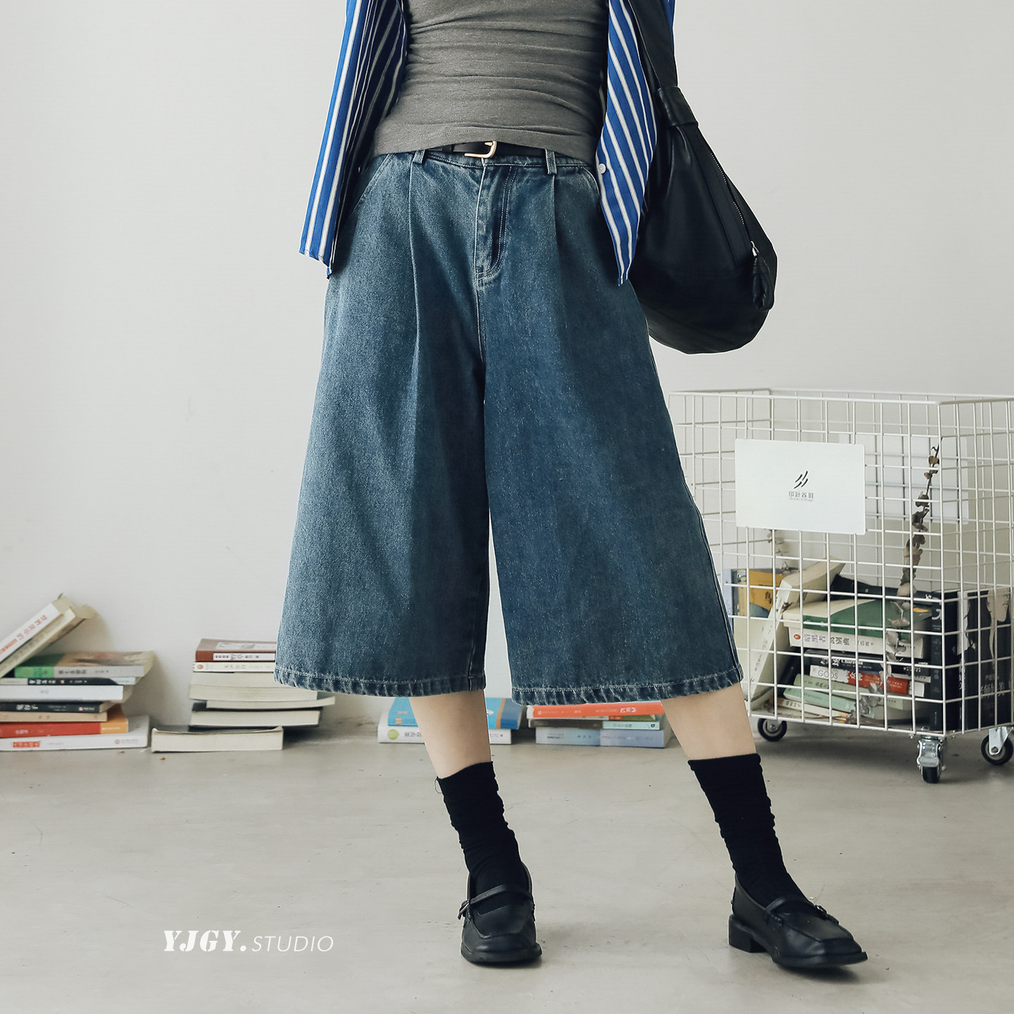 印计谷羽原创美式高街复古水洗牛仔裤女25秋冬宽松阔腿裤七分裤子