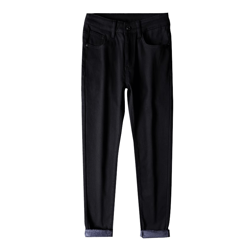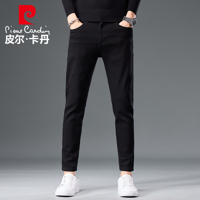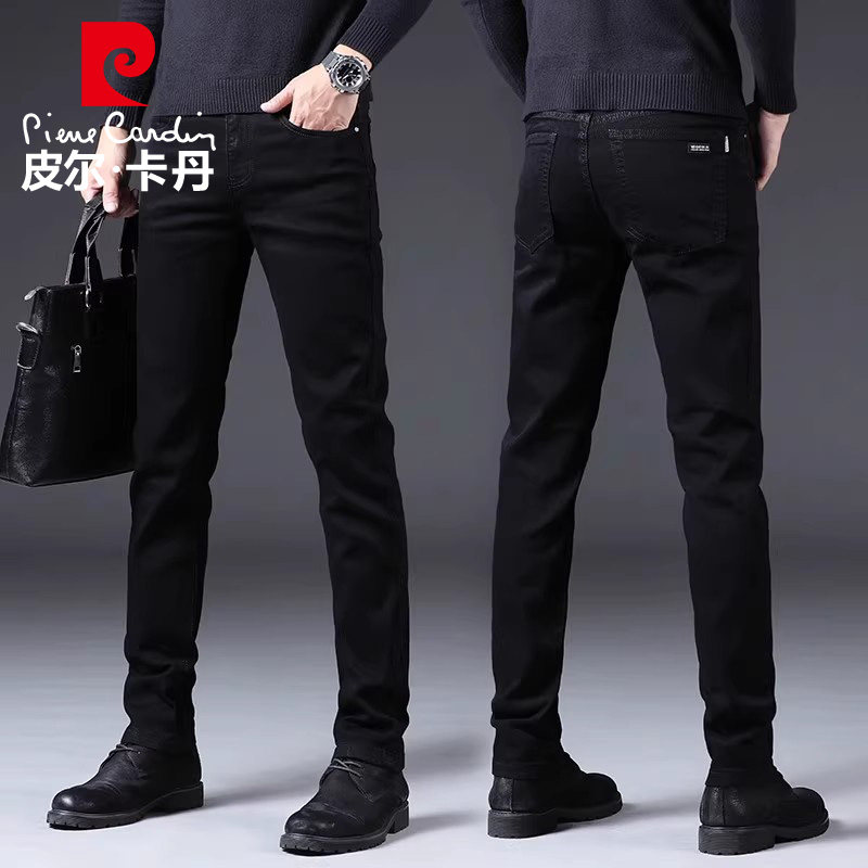 皮尔卡丹2025秋冬新款加绒厚黑色牛仔裤男士修身小脚高端弹力长裤