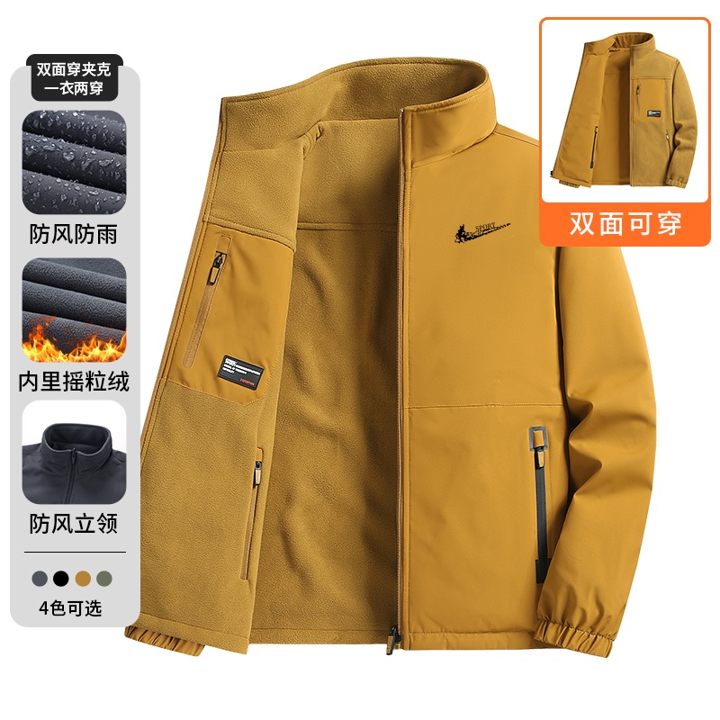 耐克顿双面穿摇粒绒夹克男士立领防风防水加厚保暖户外冲锋衣外套