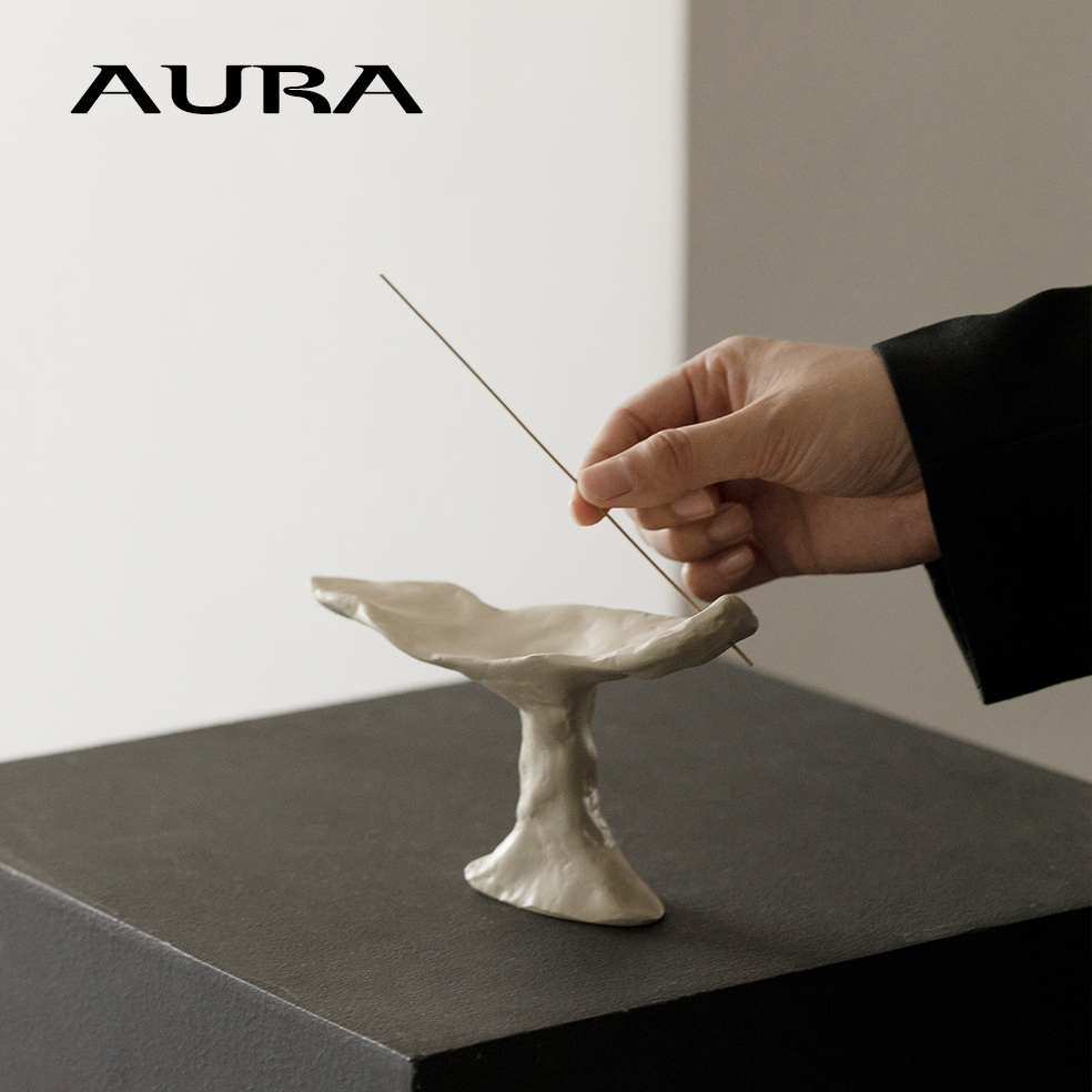 AURA北欧简约侘寂风香托香座香薰香插小众中古复古摆件雕塑艺术