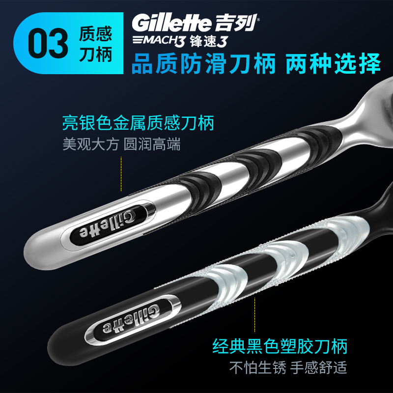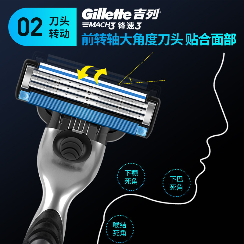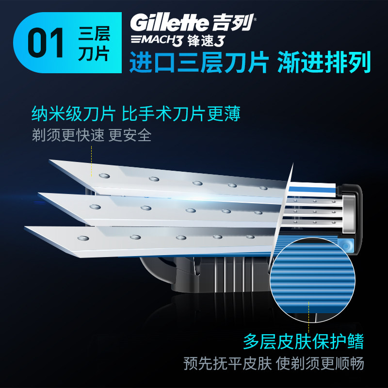 Gillette/吉列锋速3刀片刮脸刮胡刀刀头男士三层手动剃须刀原装