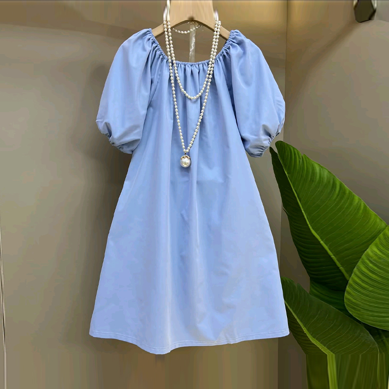 胖MM加肥可一字肩松紧袖口连衣裙大码女装夏季款学院风减龄淑女裙