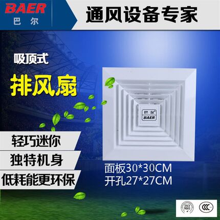 巴尔12寸家用厨房开孔27吸顶吊顶排风浴室卫生间换气排气扇KLT-18