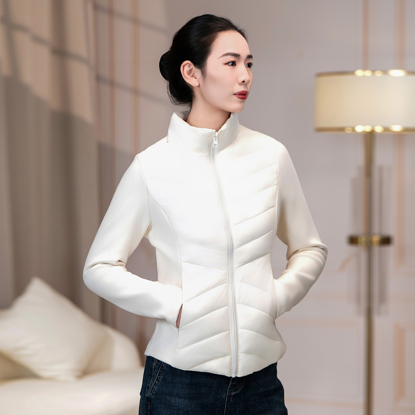 轻薄羽绒服女修身白鸭绒短款外套
