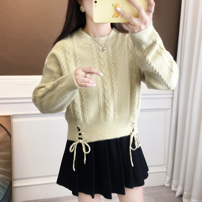 麻花毛衣慵懒风宽松绑带羊毛衫