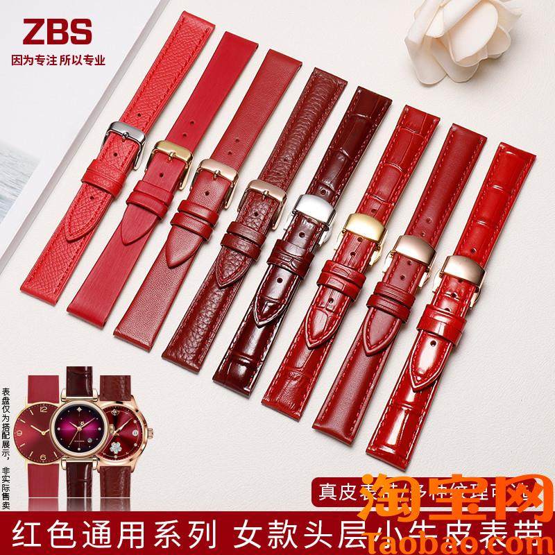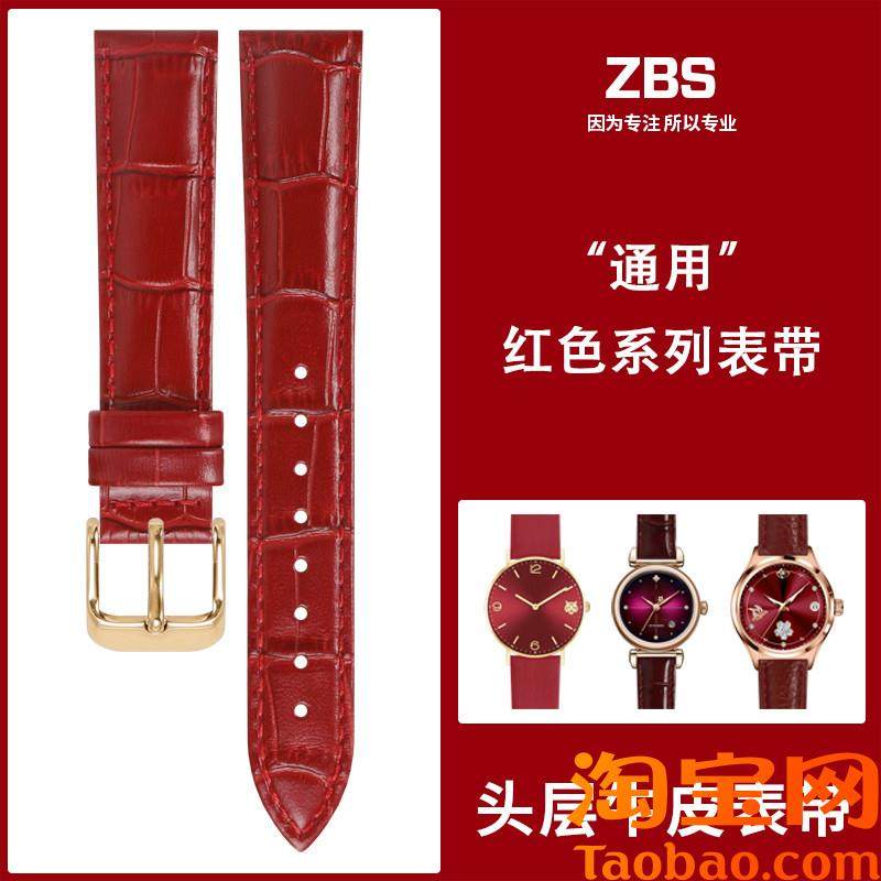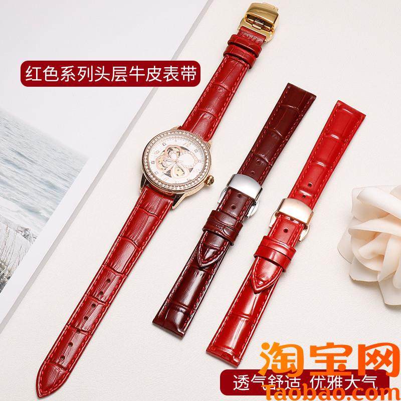 手表带真皮女款适k配格雅卡梭浪琴dw天梭卡西欧蔻驰酒红色通用表