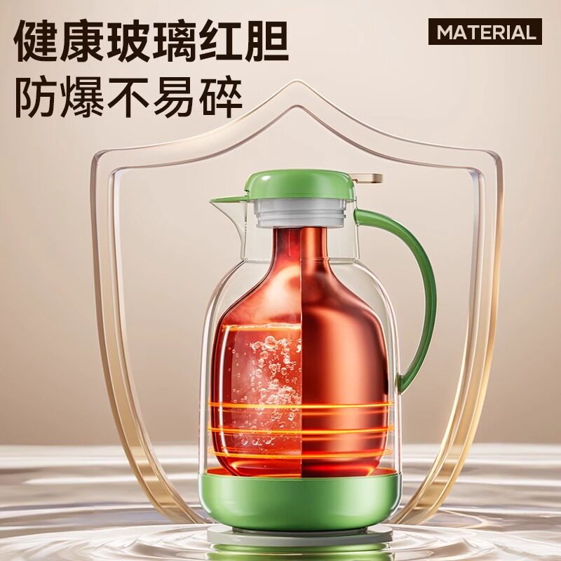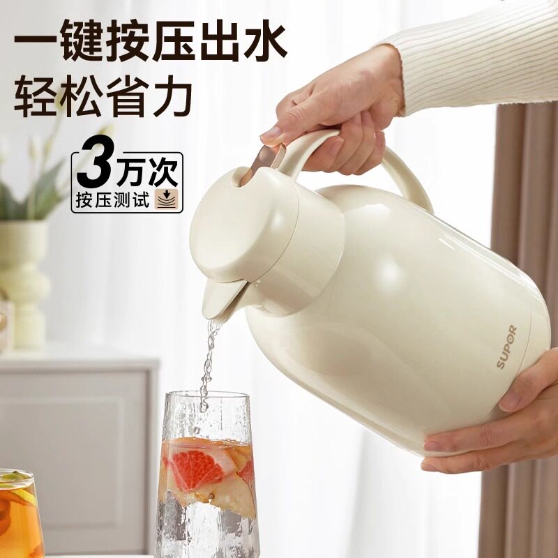苏泊尔红胆玻璃大容量便携保温壶