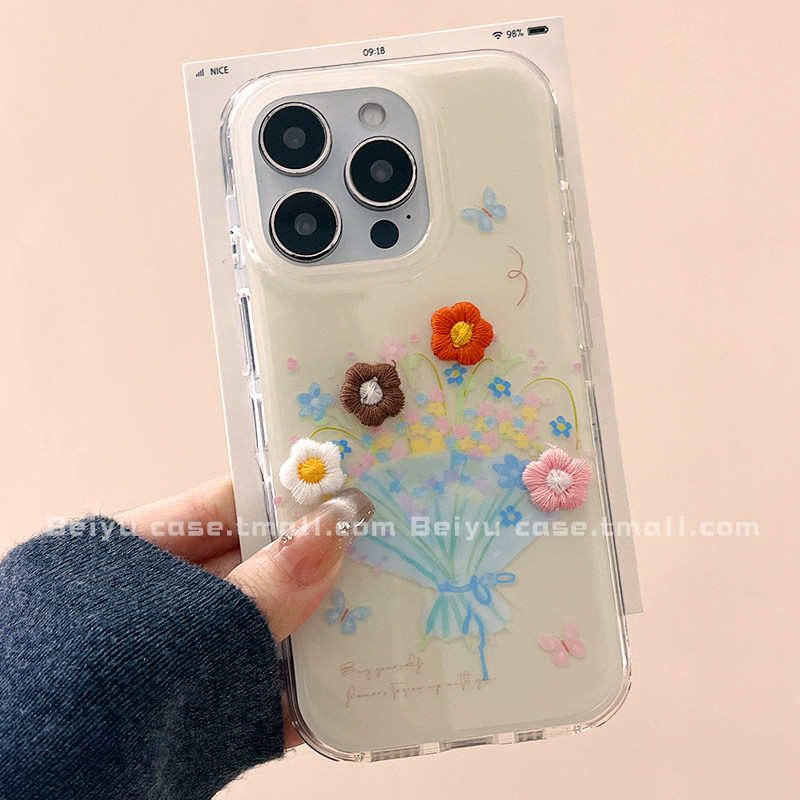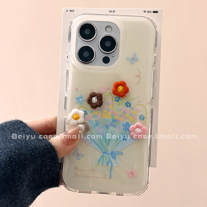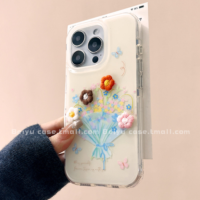 可爱卡通立体彩色花朵适用苹果17Promax手机壳iphone16pro新款15pro小众14pro高级感13硅胶17pro少女心15全包