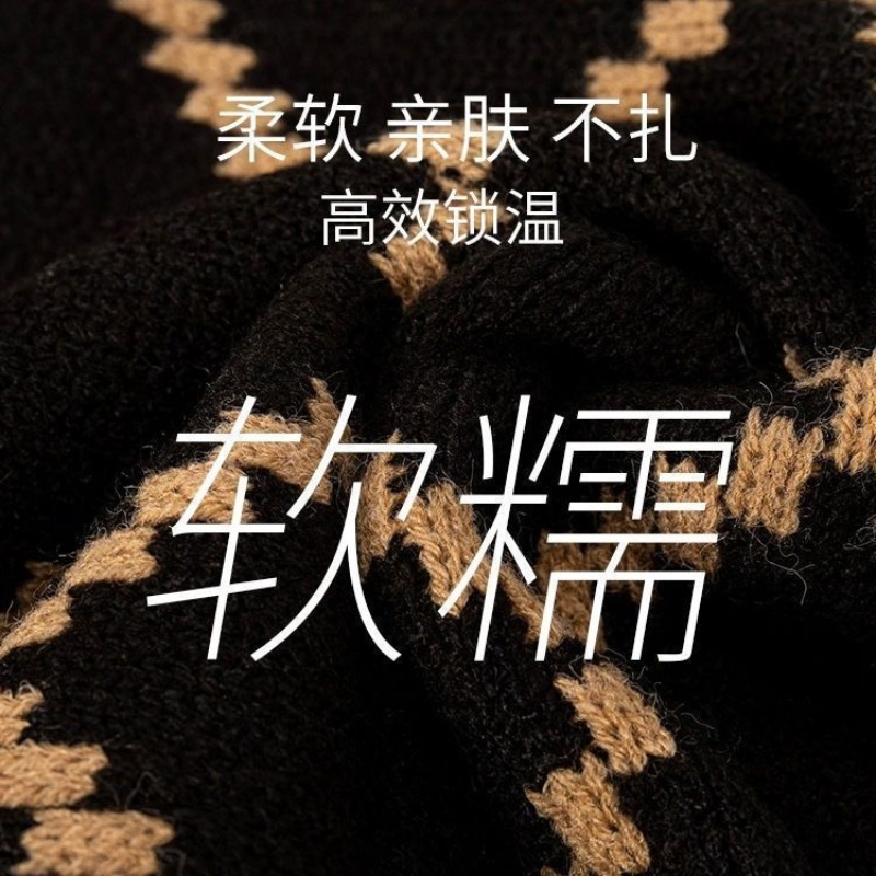 秋冬季复古针织围巾气质加厚双面披肩柔软女格子保暖围脖百搭护肩