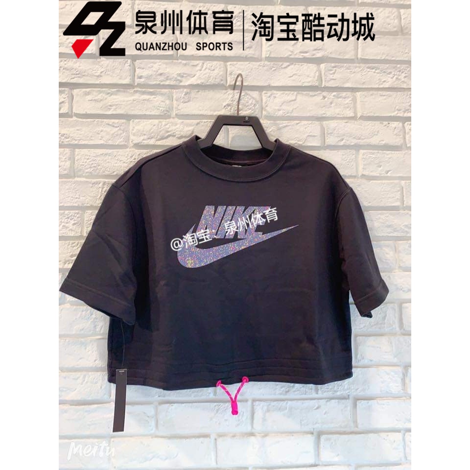 Nike/耐克 女子LOGO下摆抽绳宽松短款运动 短袖T恤CJ2276-010-287