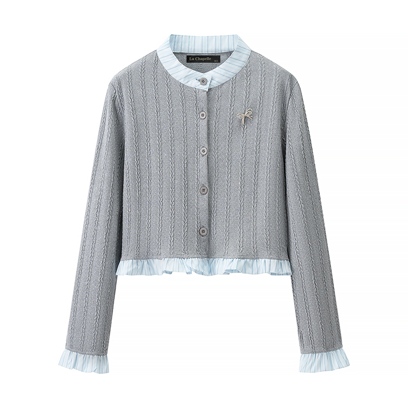 拉夏贝尔/La Chapelle法式假两件长袖针织衫女秋季新款别致上衣