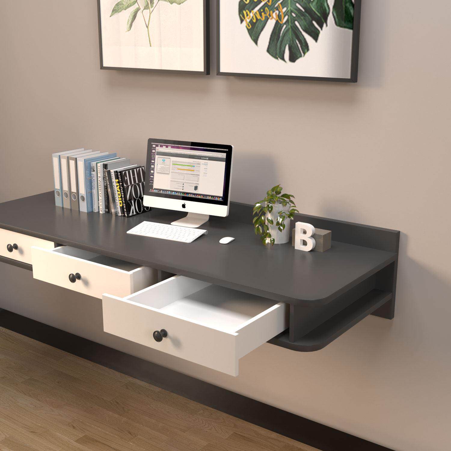 简易书桌挂墙抽屉电脑桌壁挂悬空墙上写字圆角书房儿童学习化妆