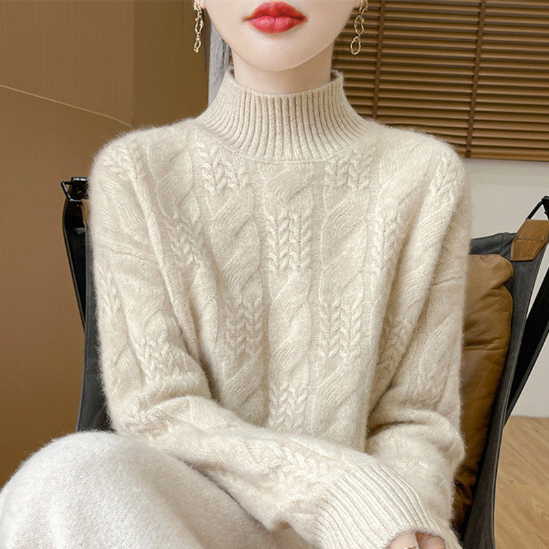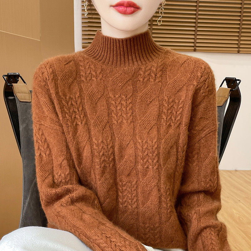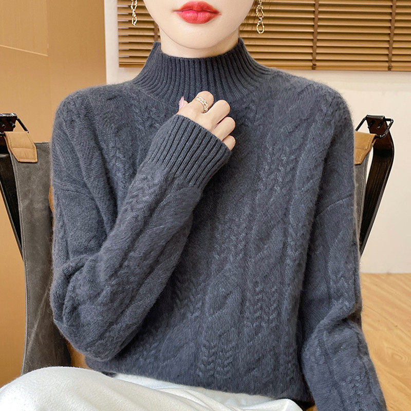鄂尔多斯市重磅麻花半高领羊绒衫毛衣女加厚针织衫洋气上衣打底衫