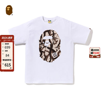 BAPE男装25年春夏荆棘迷彩猿人印花短袖T恤034101O