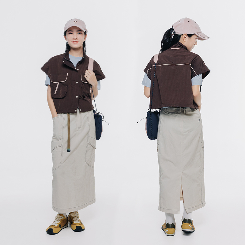 ACMEITEM爱棵米 户外女士撞色线工装长裙后开叉合体休闲半身裙子