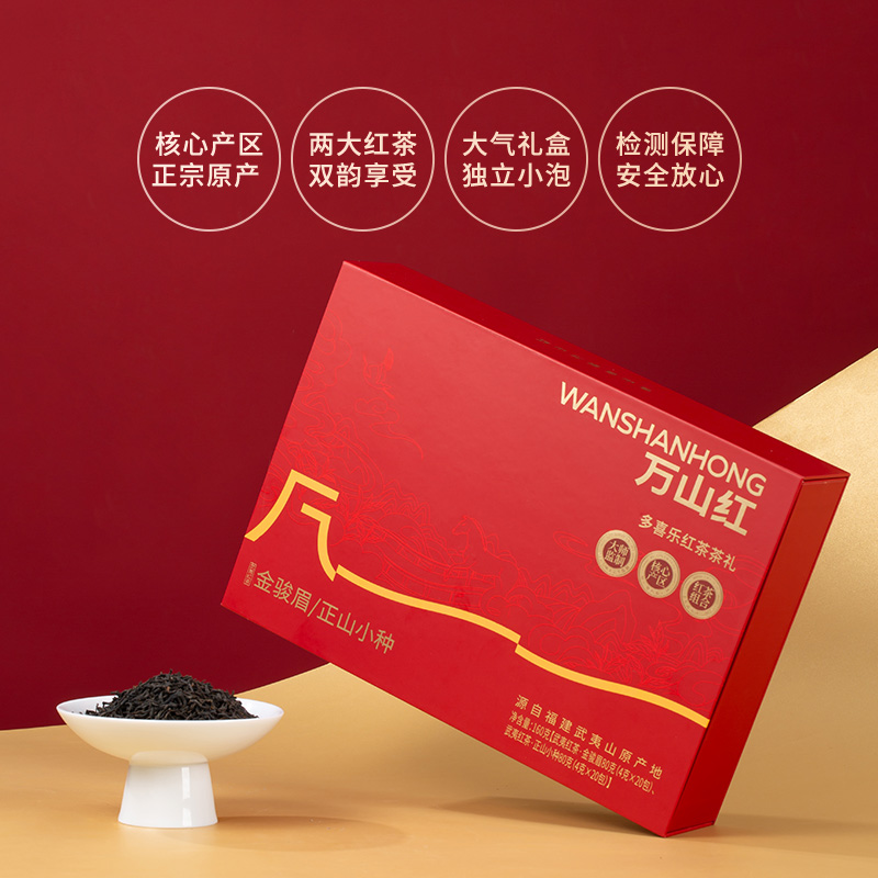 万山红金骏眉正山小种武夷红茶组合过节送礼大气伴手礼茶叶礼盒