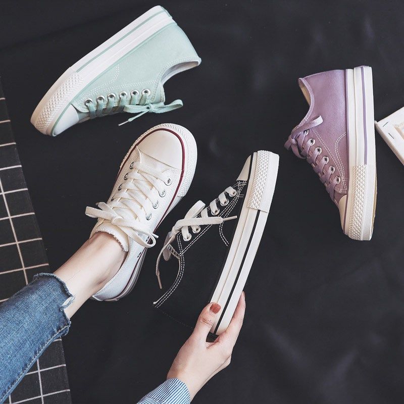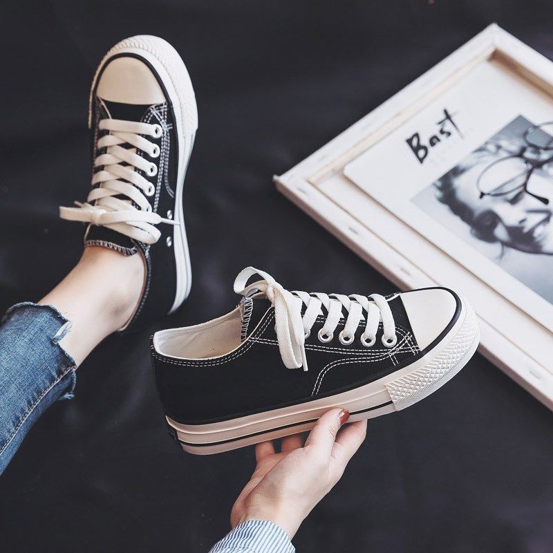 厚底帆布鞋女松糕休闲低帮小白鞋