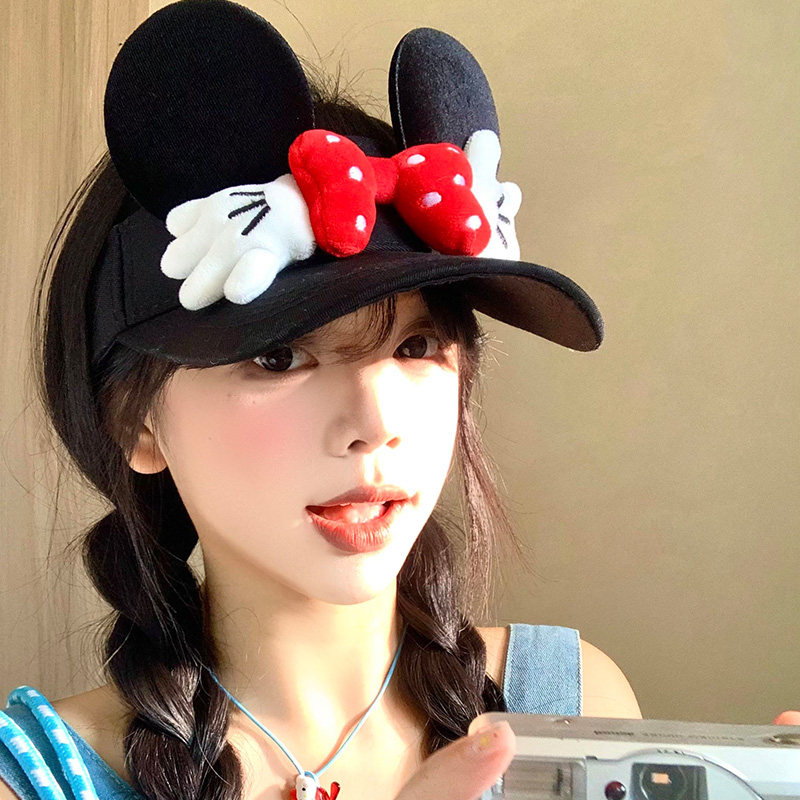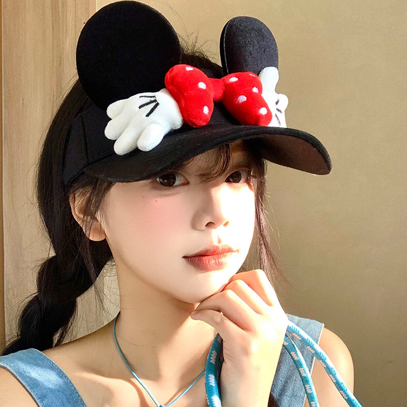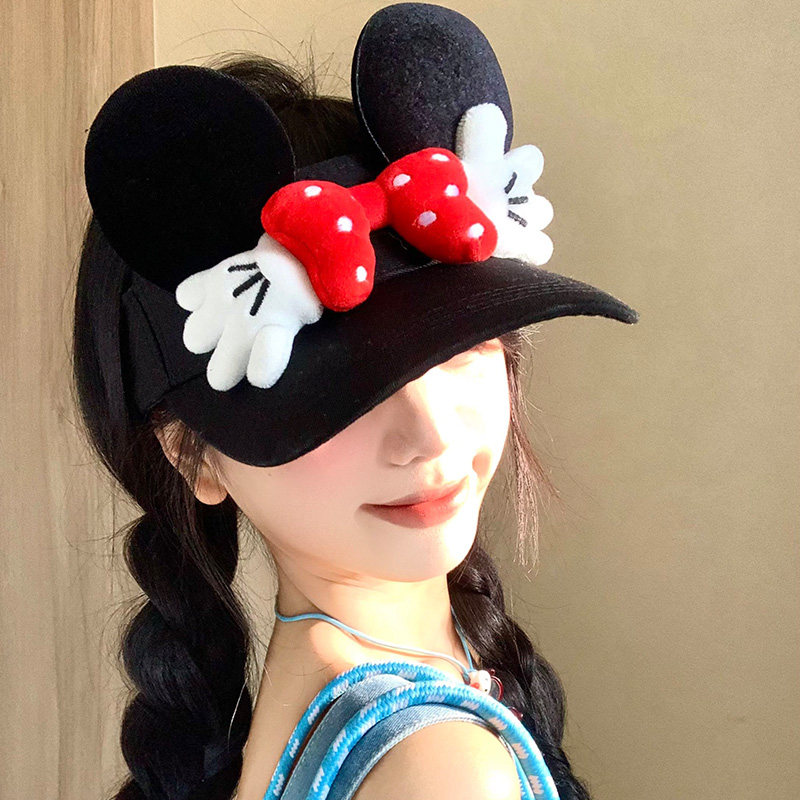 可爱米奇小手蝴蝶结空顶防晒帽