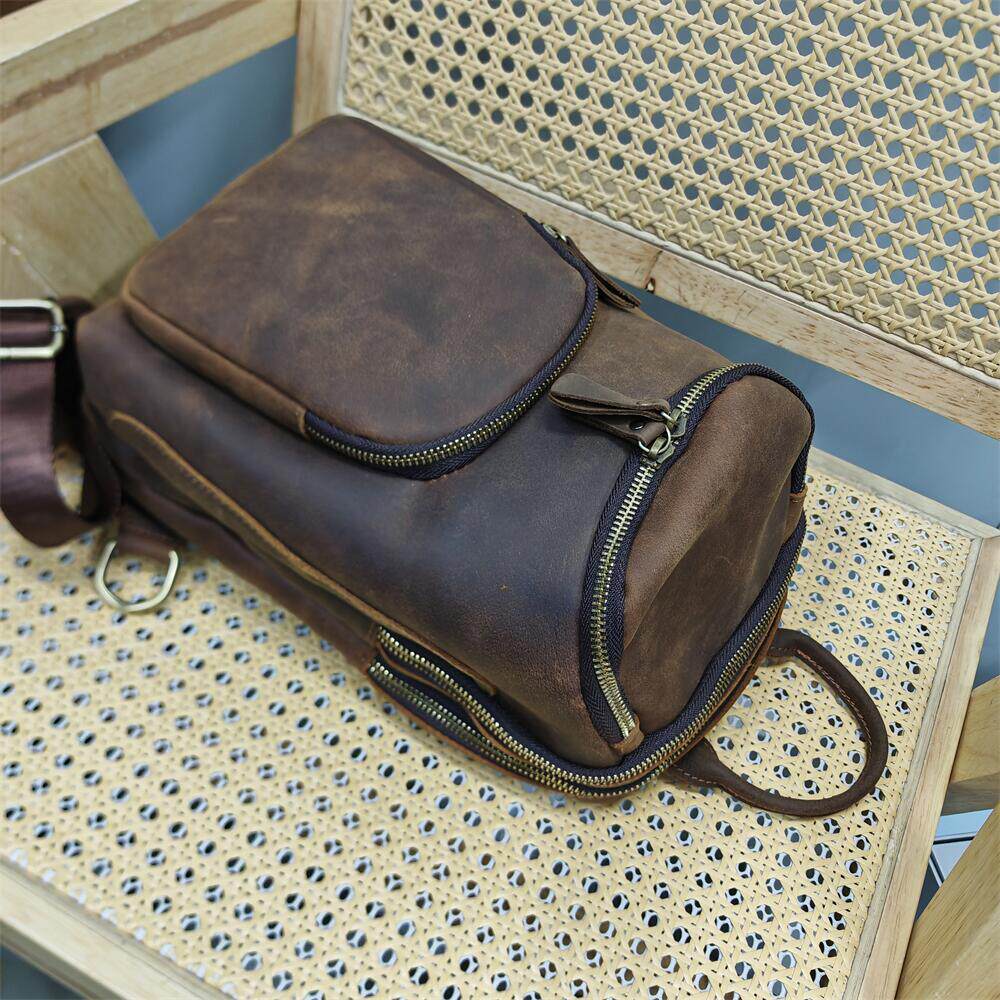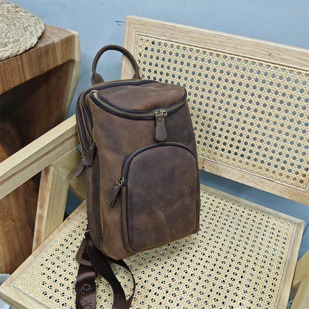 头层牛皮疯马牛皮复古大容量男士胸包真皮品牌外贸出口库存斜挎包