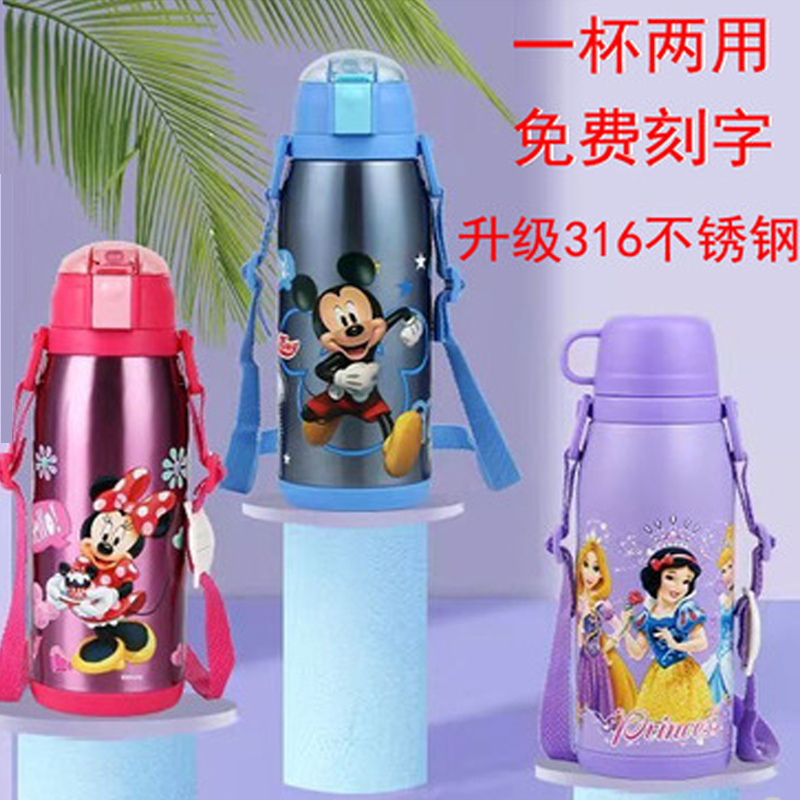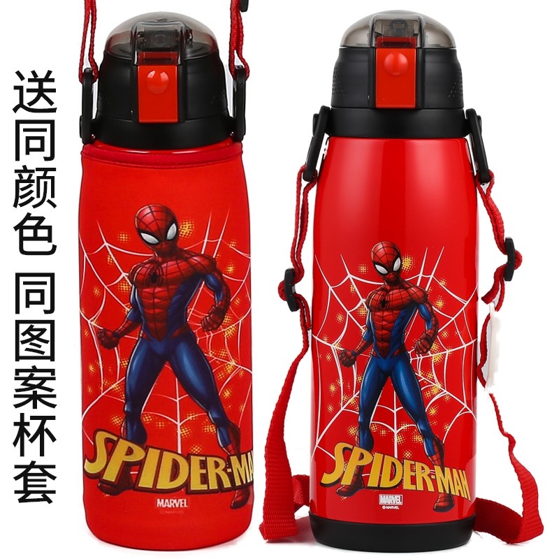 迪士尼蜘蛛侠队长大容量儿童吸管保温杯两用幼儿园小学生防摔水壶