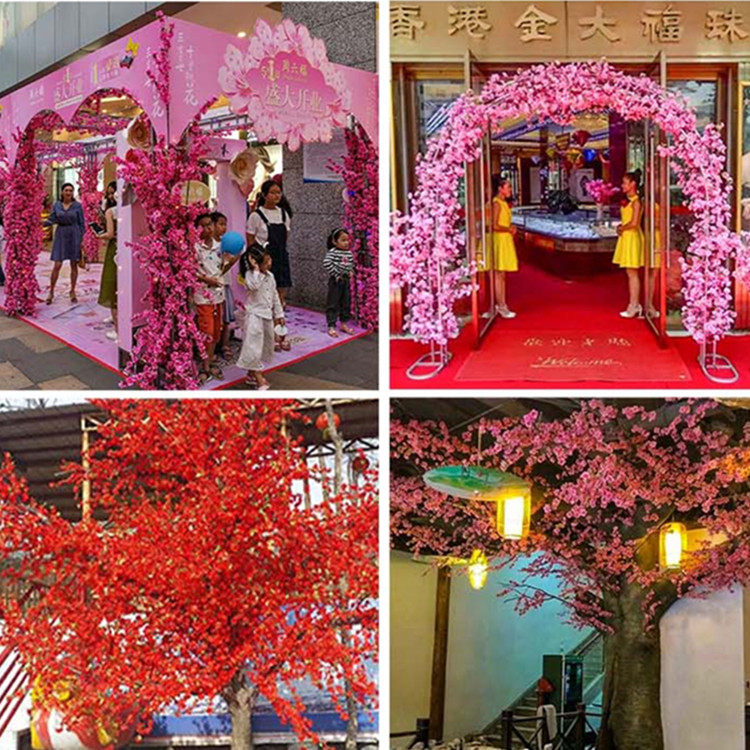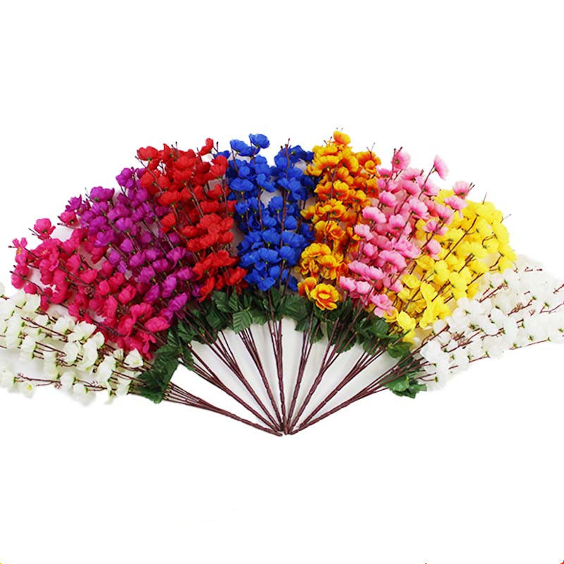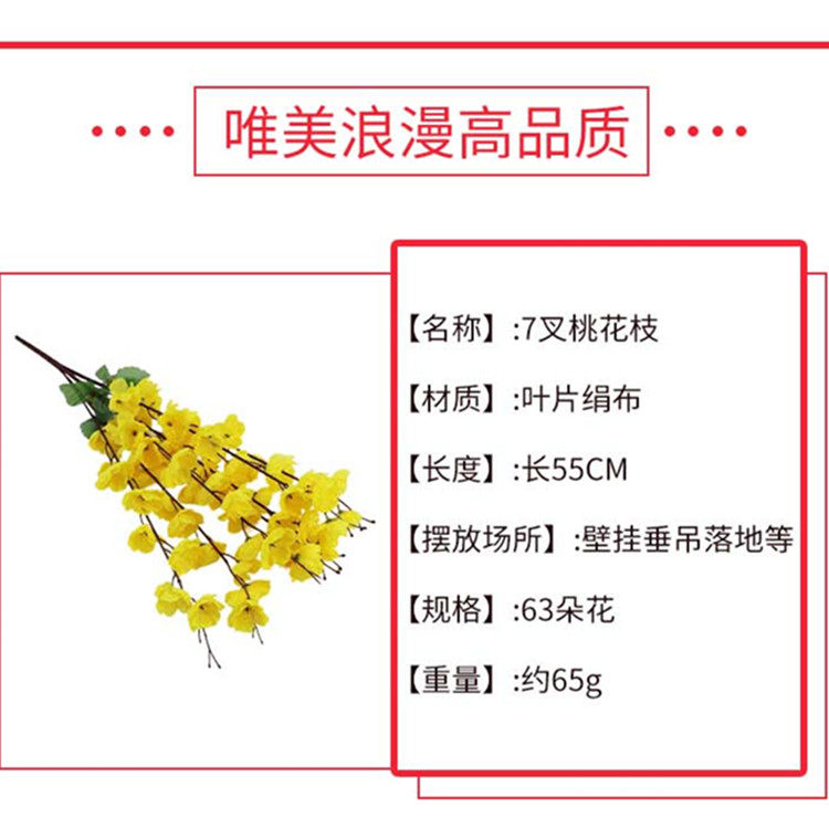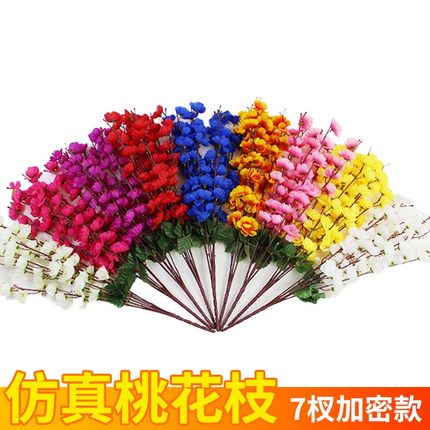 仿真桃花枝假花单支干花樱花客厅摆件树枝腊梅花绢花假树造景装饰