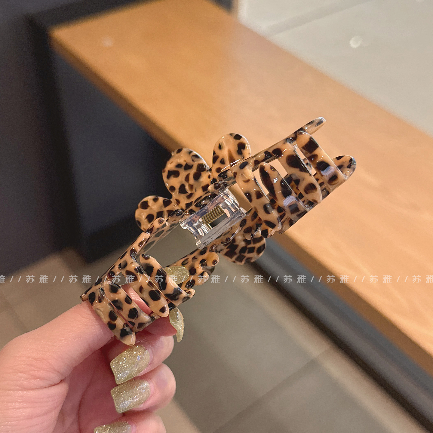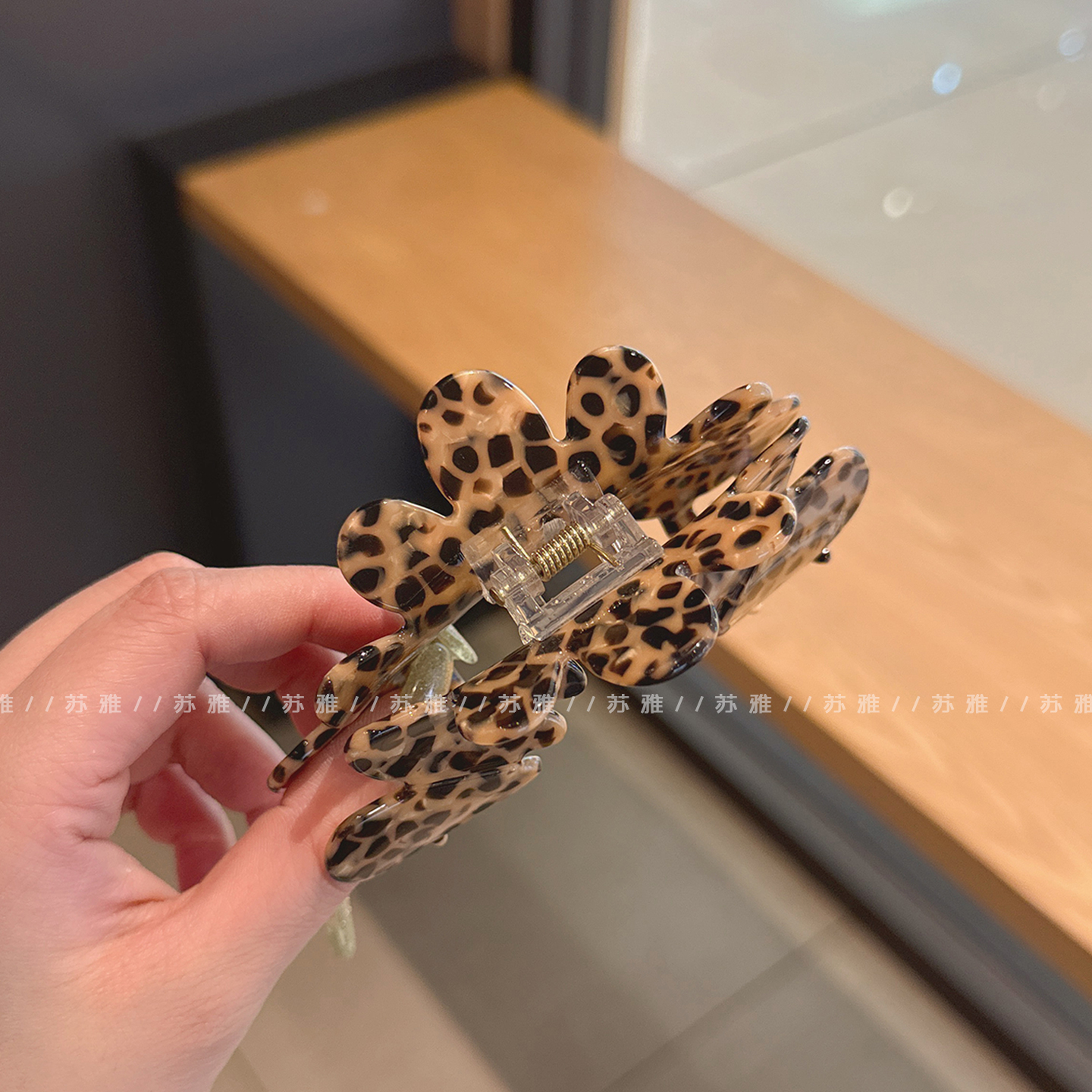 法式高级感花瓣抓夹女大号复古气质豹纹发夹后脑勺夹子头饰鲨鱼夹