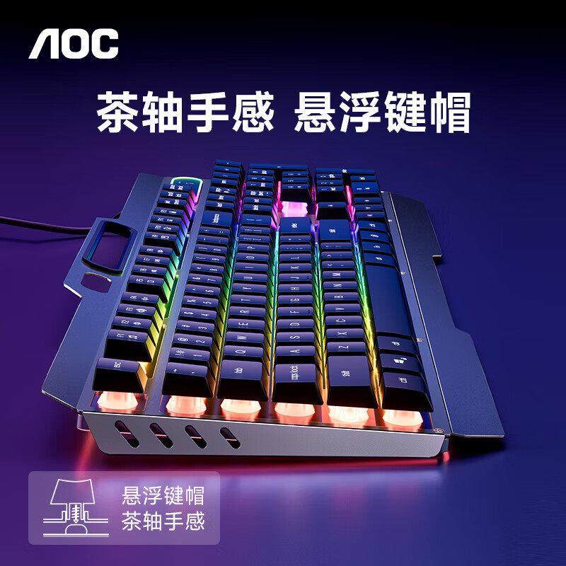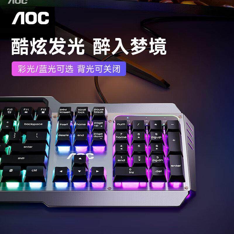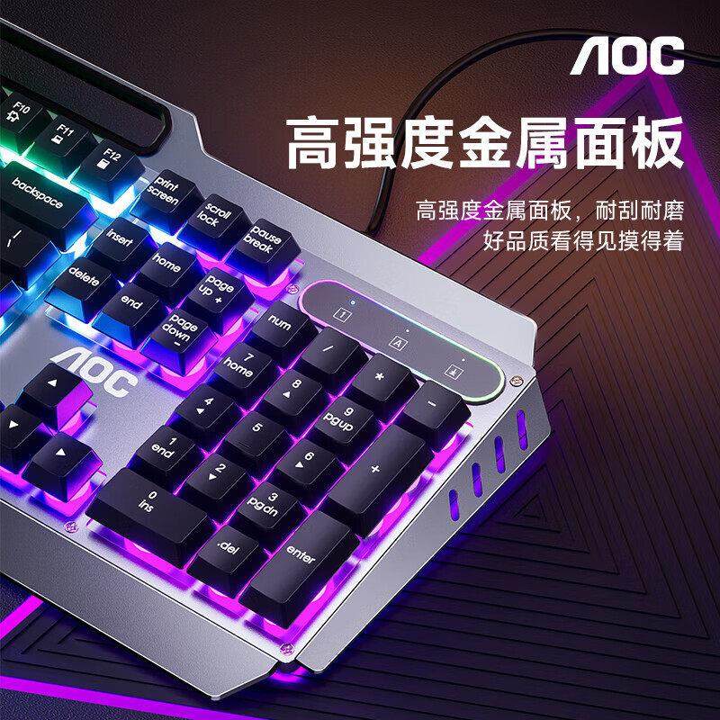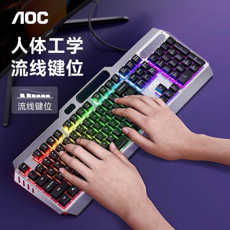 AOC机械手感键盘有线 线游戏电竞金属滑鼠套组桌上型电脑笔电通用