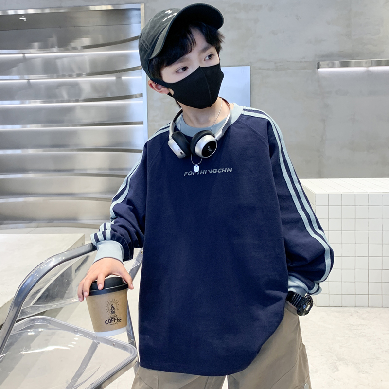 男童春秋款T恤2025新款中大男孩长袖打底衫圆领9儿童秋装运动卫衣