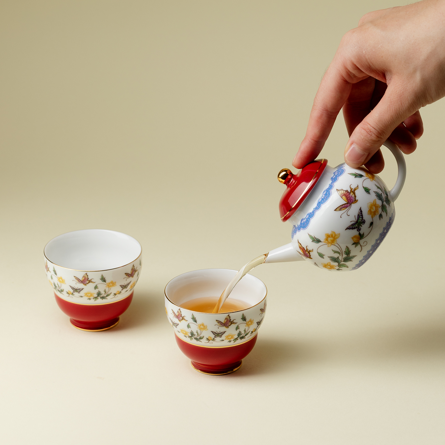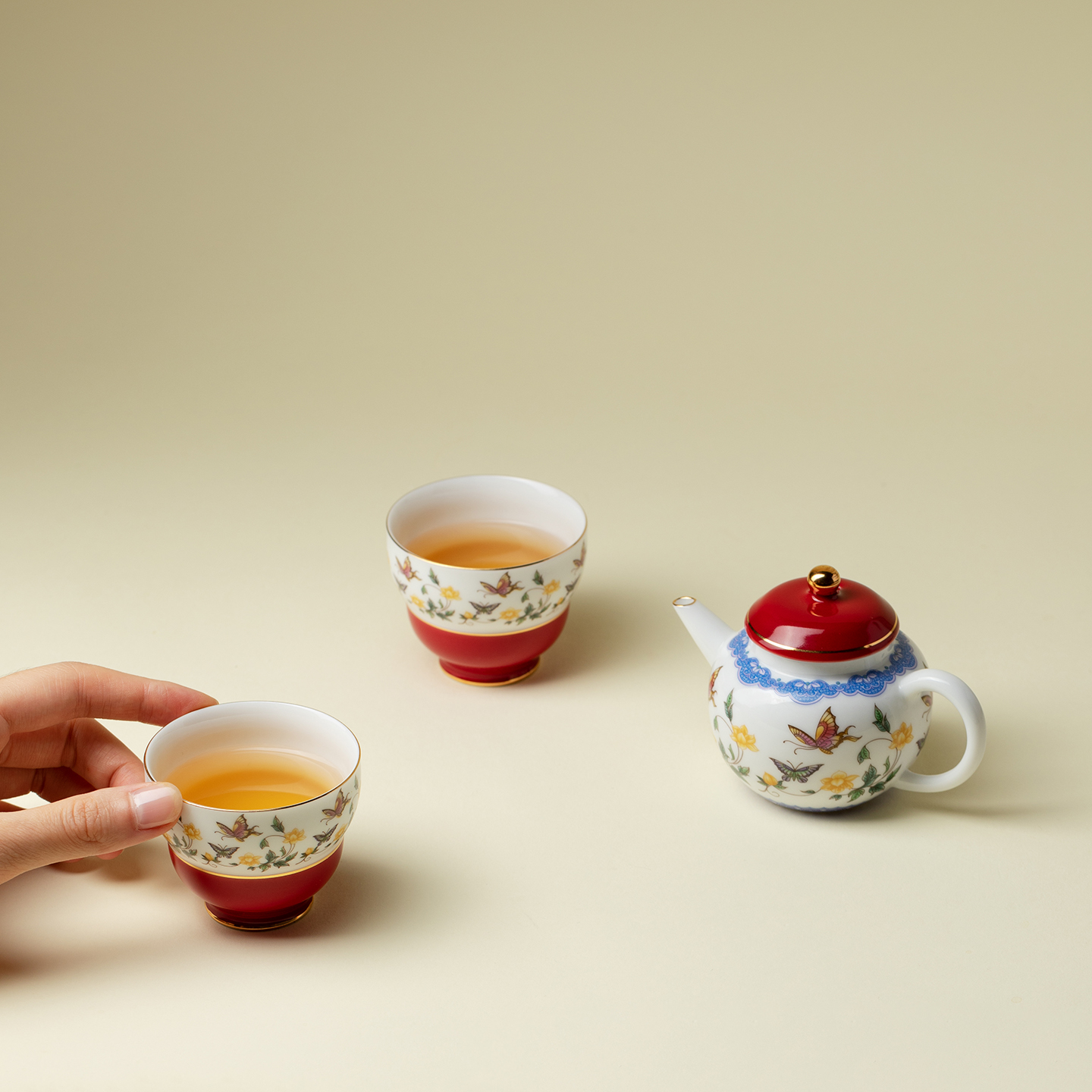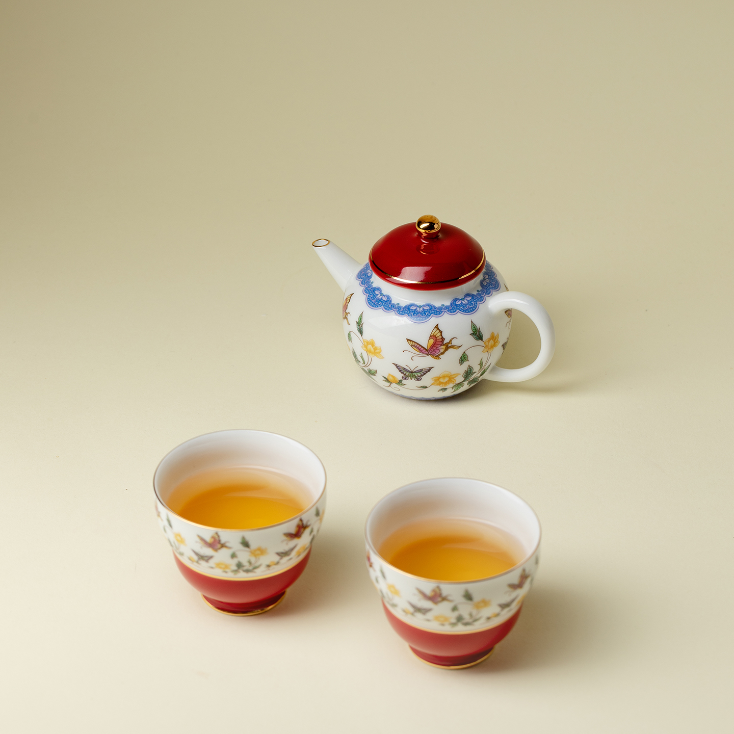 植述粉彩金缘蝶绘泡茶壶一壶一杯功夫茶具套装节日送闺蜜朋友礼物