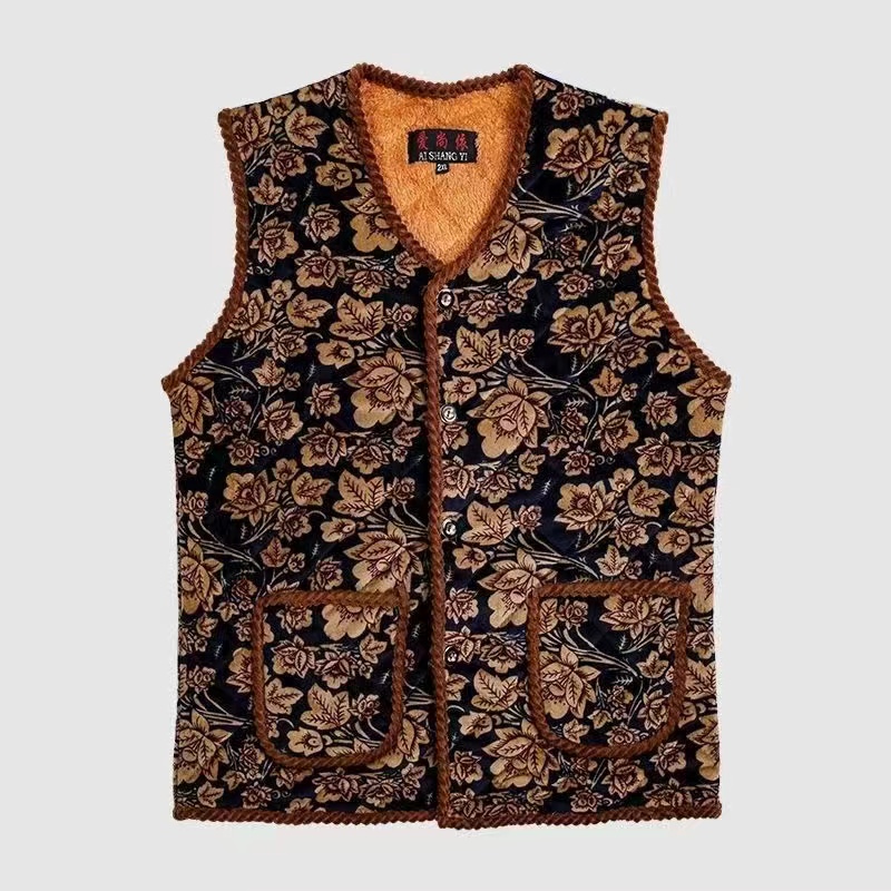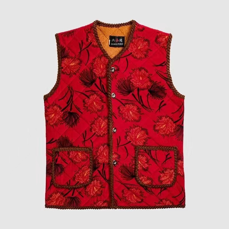 老人防寒冬装马甲女驼绒背心外套