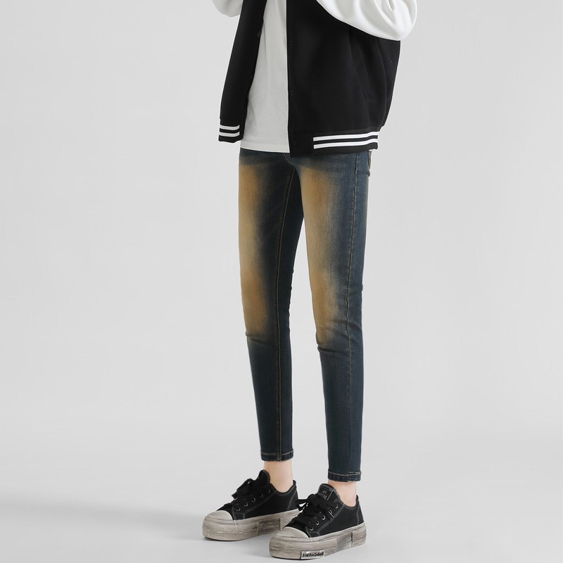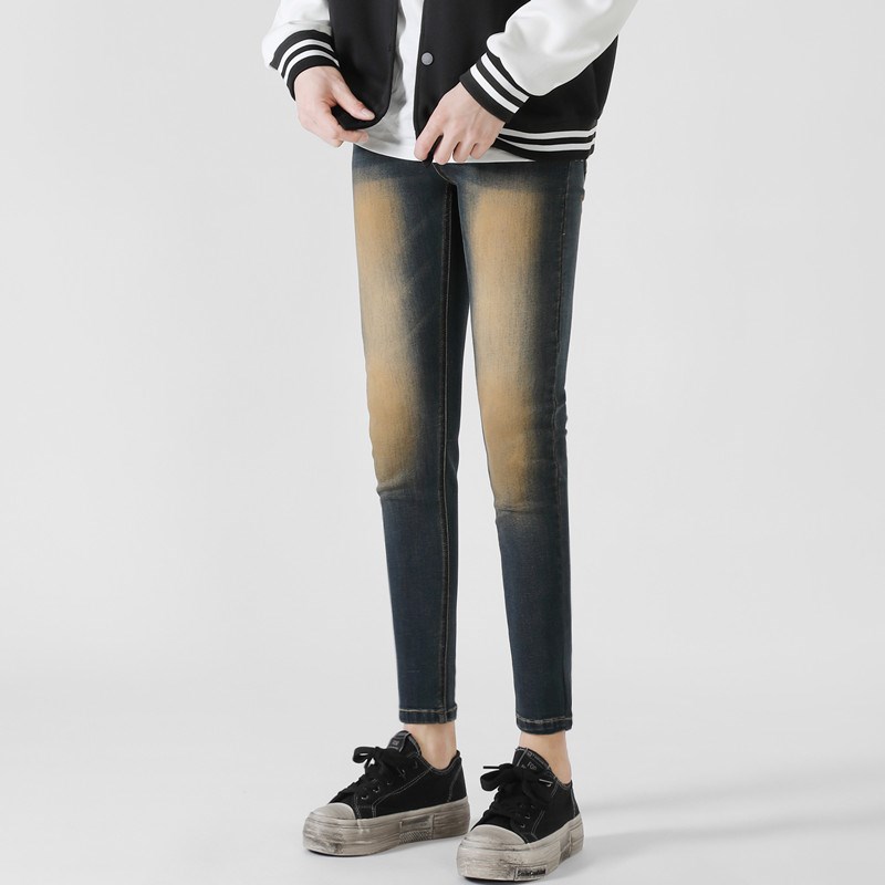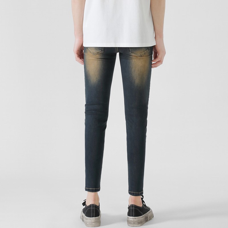 高端潮流重水洗复古色紧身铅笔裤男士新款小脚百搭修身弹力牛仔裤