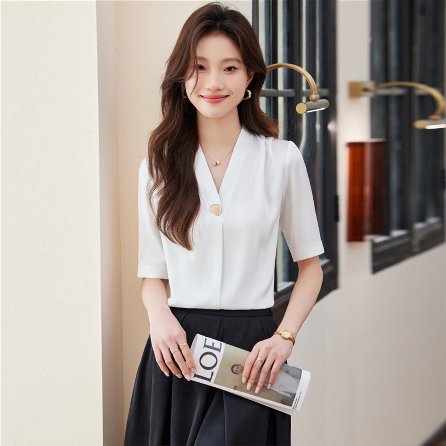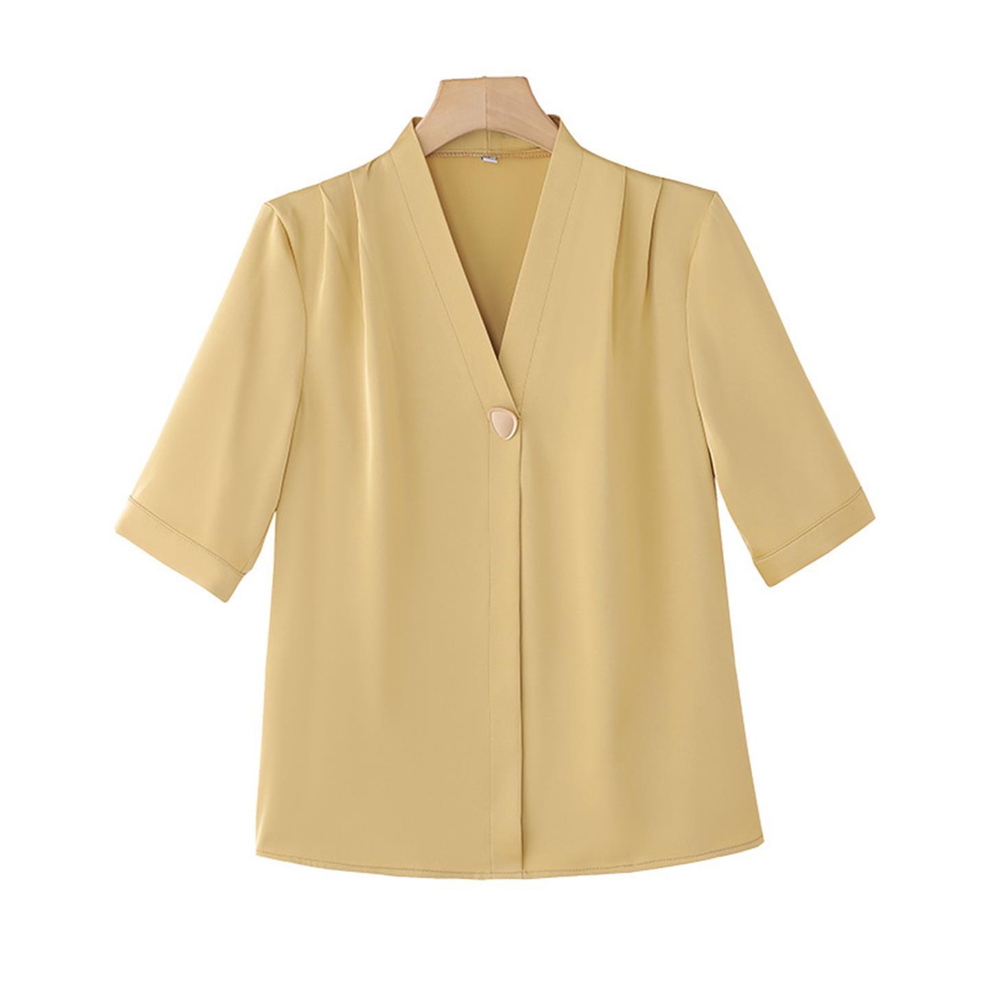 白色衬衫女雪纺夏季职业中袖上衣2025新款时尚缎面短袖白衬衣