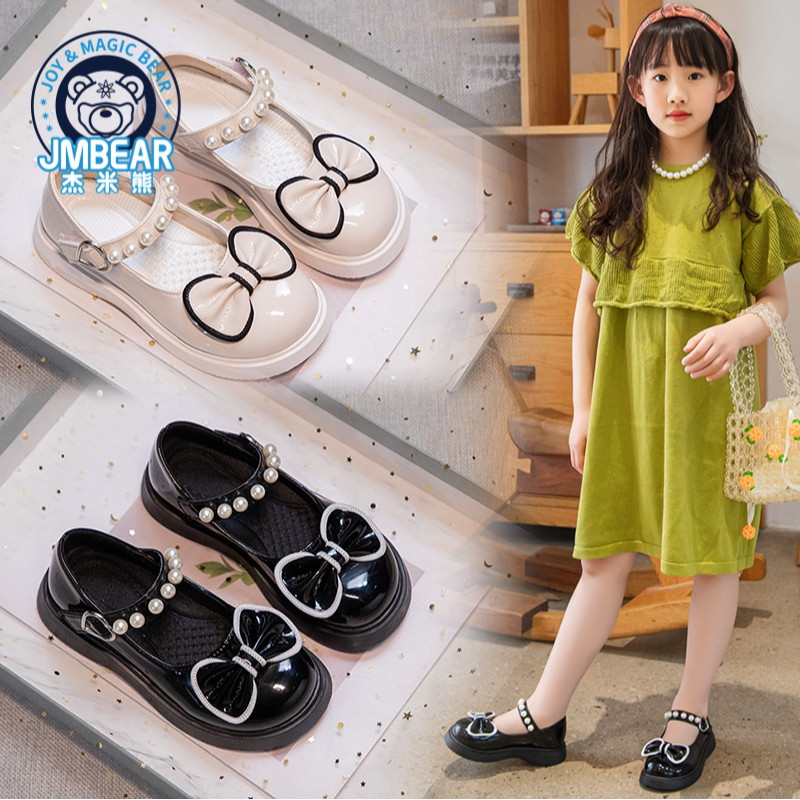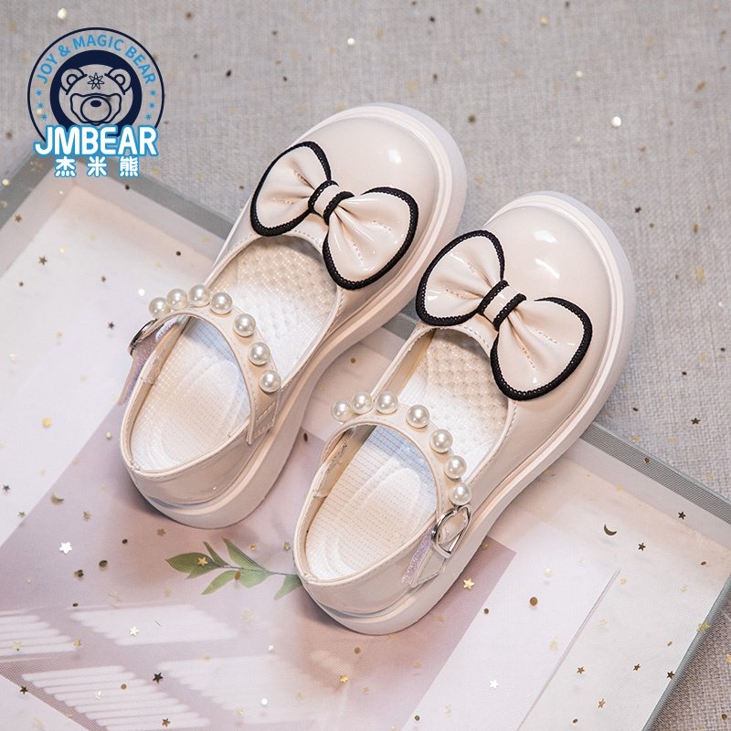 杰米熊童鞋2025秋季新款女童魔术贴洋气小皮鞋儿童时尚甜美公主鞋