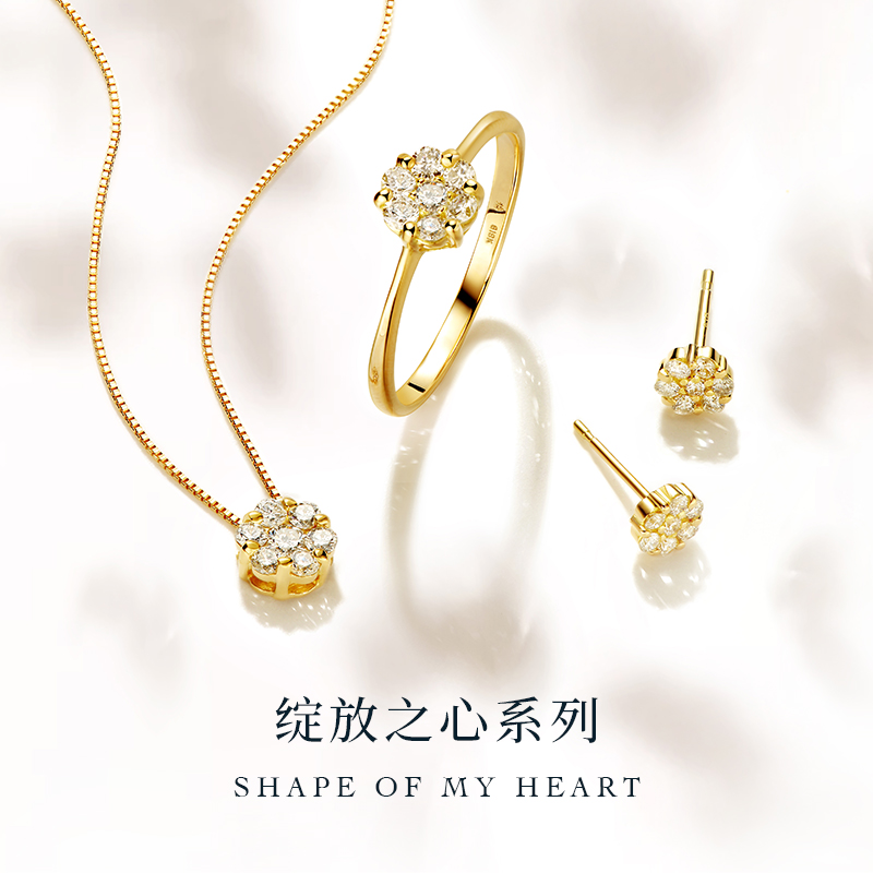CIRCLE珠宝绽放之心系列18K金20分天然钻石项链真钻吊坠项链礼物