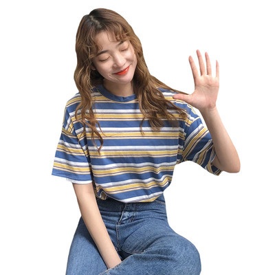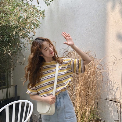 2025年夏季新款韩版宽松条纹休闲t恤女短袖学生上衣女装