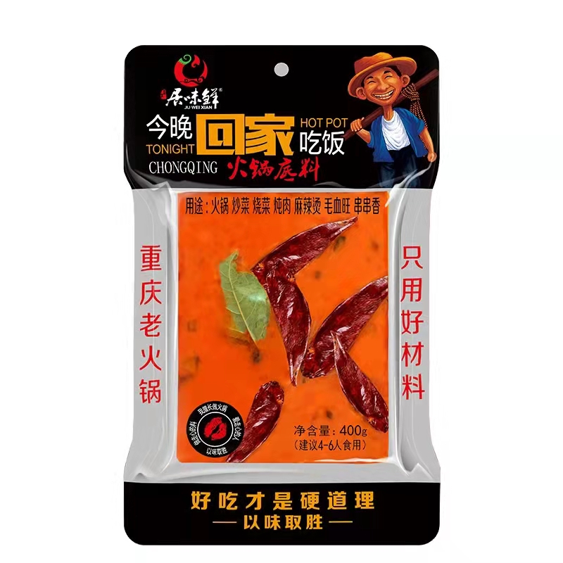 居味鲜重庆香辣抖音火锅底料透明装牛油红汤特辣麻辣烫调料400g