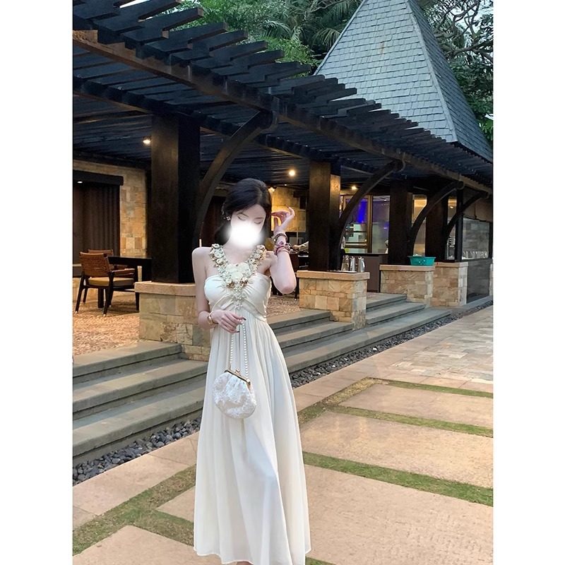 生日礼服裙高端精致名媛重工钉珠立体花朵连衣裙女度假风雪纺长裙