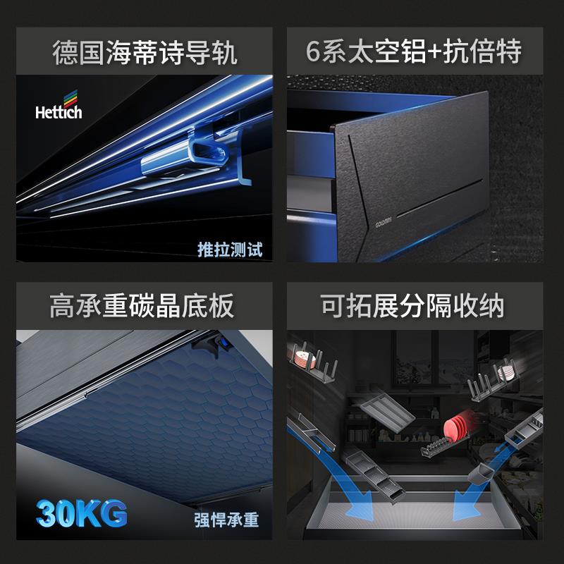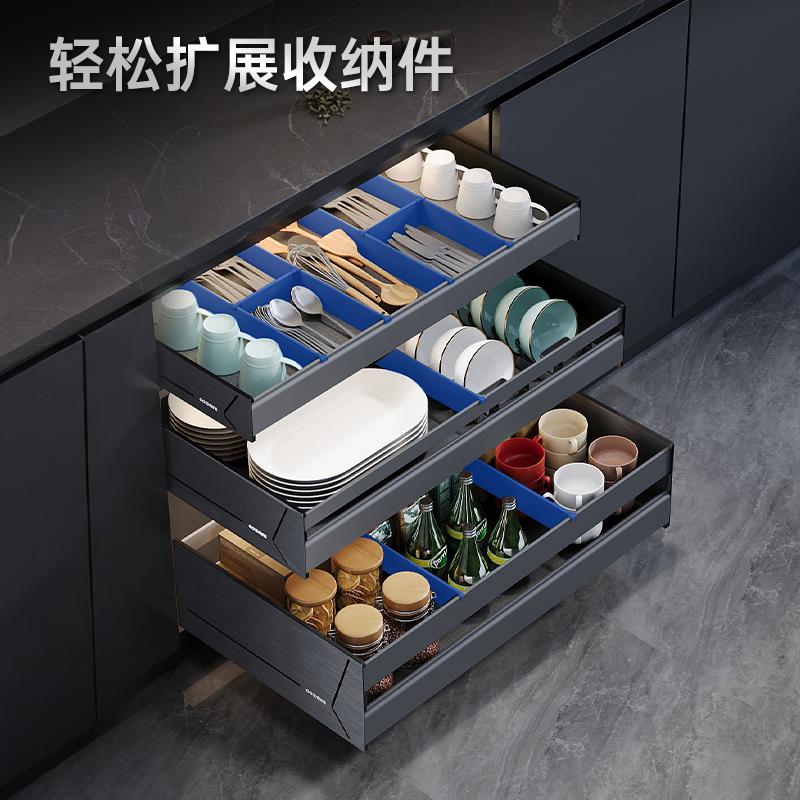 格麦太空铝抽屉拉篮餐边柜橱柜厨房内置高柜收纳碗篮抽屉式锅具