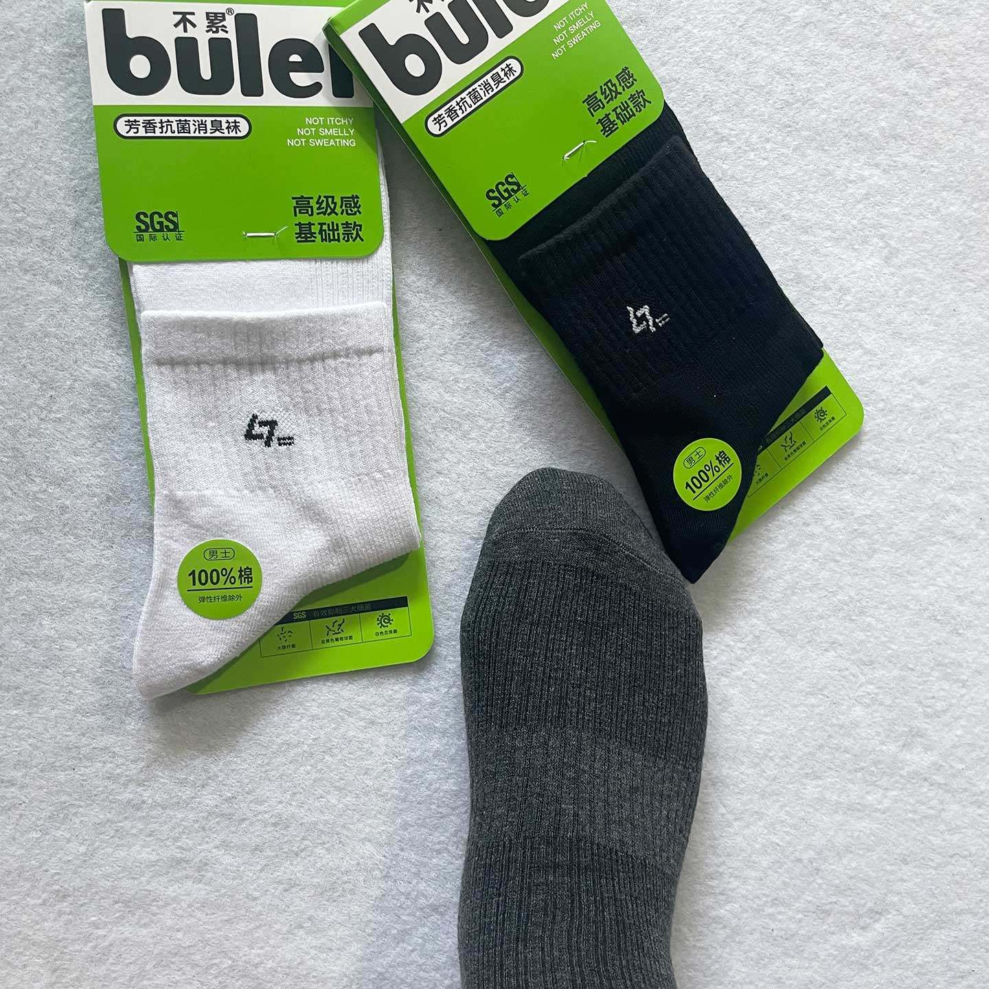不累003秋冬四季中筒袜透气休闲运动袜100%棉芳香抗菌防臭袜男袜