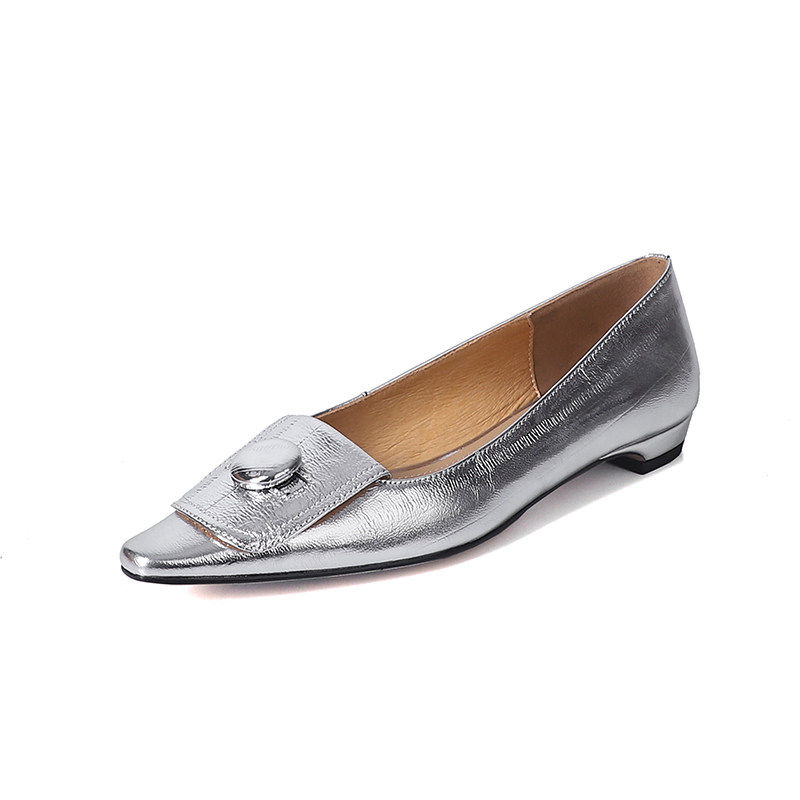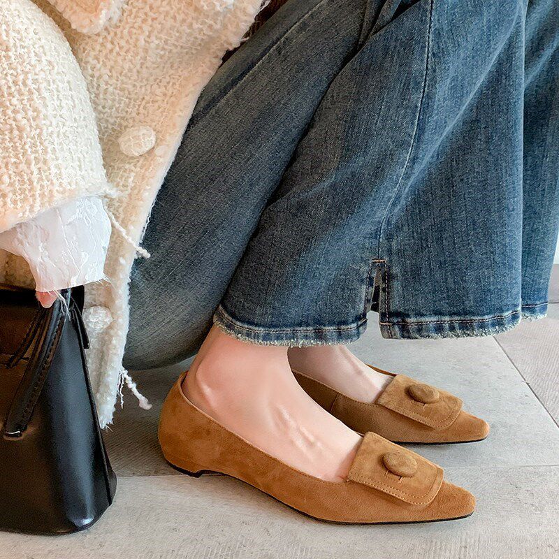 真皮法式复古晚风温柔配裙子气质尖头平底浅口翻盖新中式单鞋女