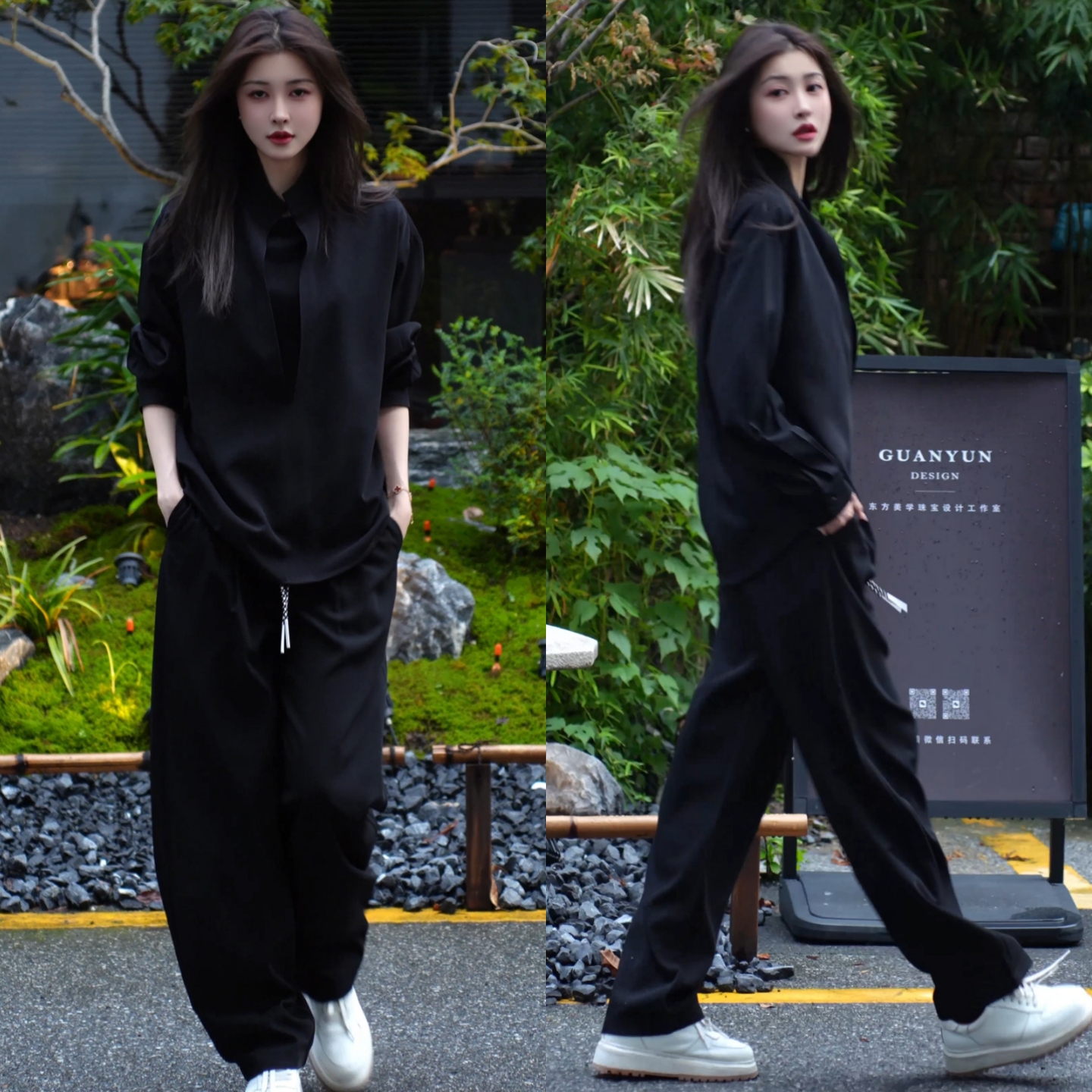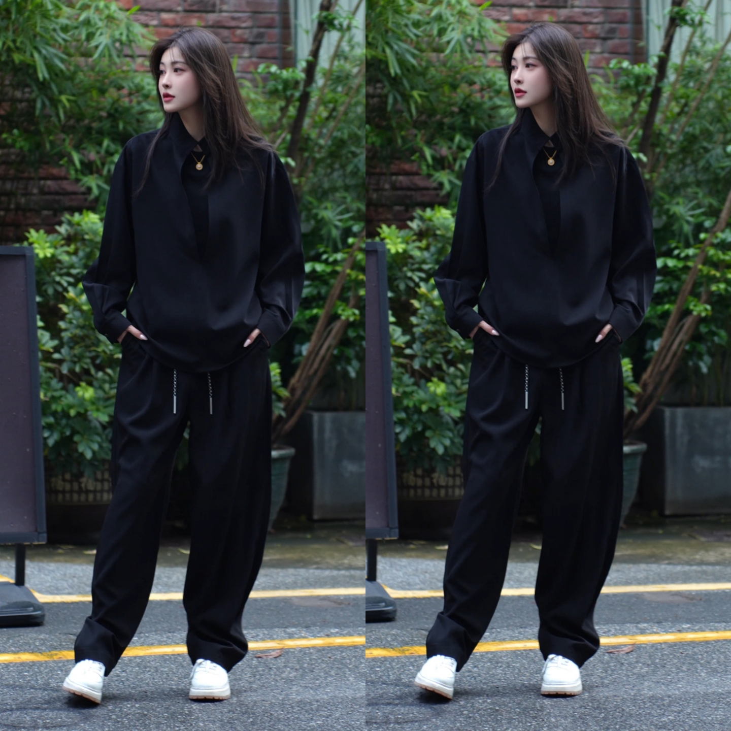 【直播间同款】秋季时尚简约套装假两件衬衫纯色休闲裤情侣两件套