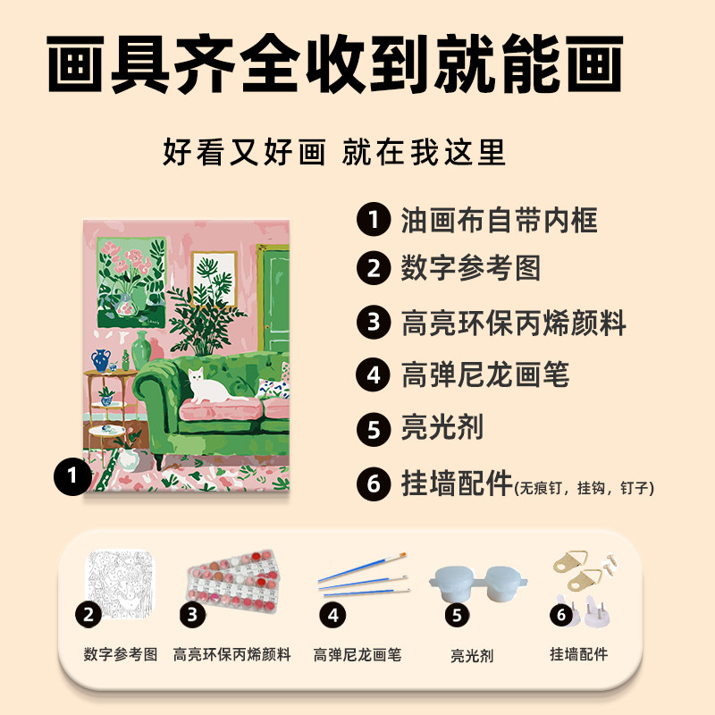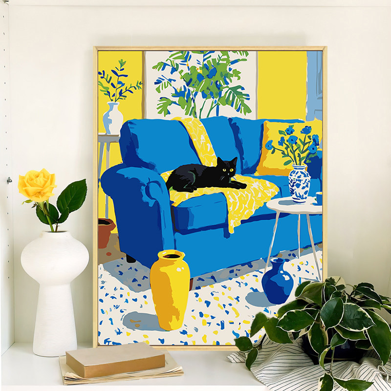 马蒂斯猫咪数字油画diy填充填色手工绘ins高颜值丙烯油彩画装饰画