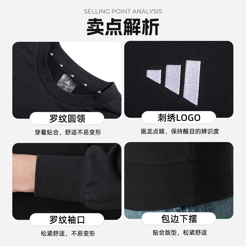 阿迪达斯男装26春季新款男士休闲卫衣跑步运动服圆领套头衫JE3837