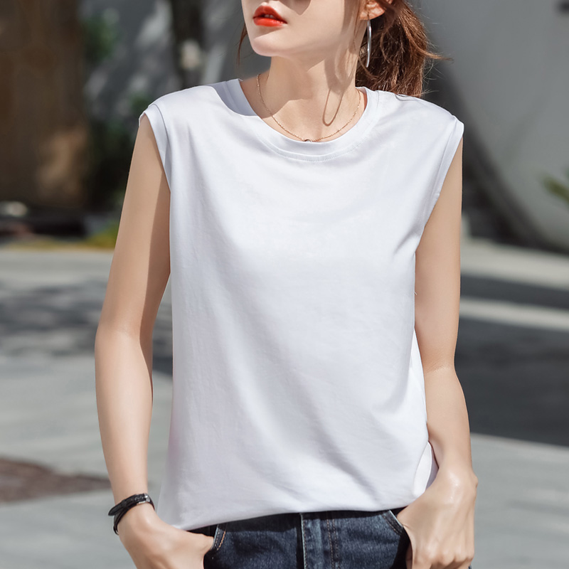 80支丝光棉t恤女外穿宽松夏装无袖背心纯棉打底显瘦百搭上衣服女